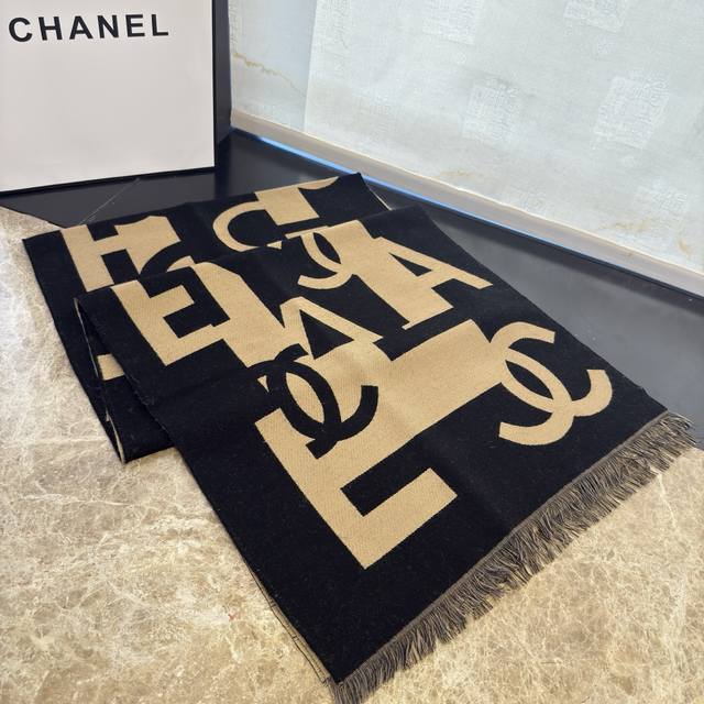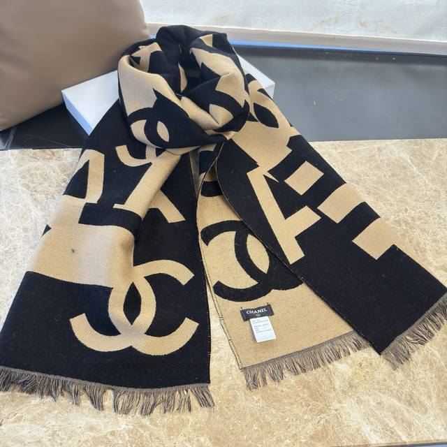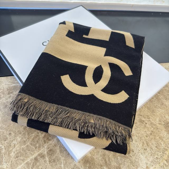 Chanel reversible scarf, a must-have! Chanel's hottest style this year. Geometric pattern paired with camel and black, or navy blue and white