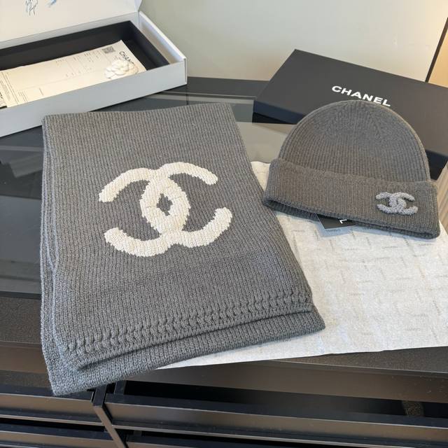 Chanel Scarf and Hat Set New Arrival - Highly Recommended! Chanel's Fall/Winter Cashmere Scarf is made from the finest cashmere fibers. The process is time-consuming and labor-intensive, involving soaking and washing in spring water to give the cashmere fibers a unique fluffy texture and incredibly delicate feel. A light fulling process is used to achieve a luxurious and soft surface luster. The fabric is incredibly soft and plush . Chanel has always been synonymous with meticulous craftsmanship. This price is absolutely 100% affordable! Perfect for gifting or keeping for yourself! A truly excellent product. Size: 30 x 190 cm, 100% Cashmere.