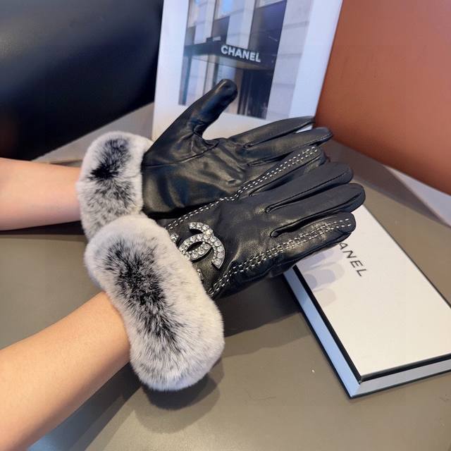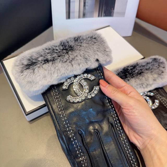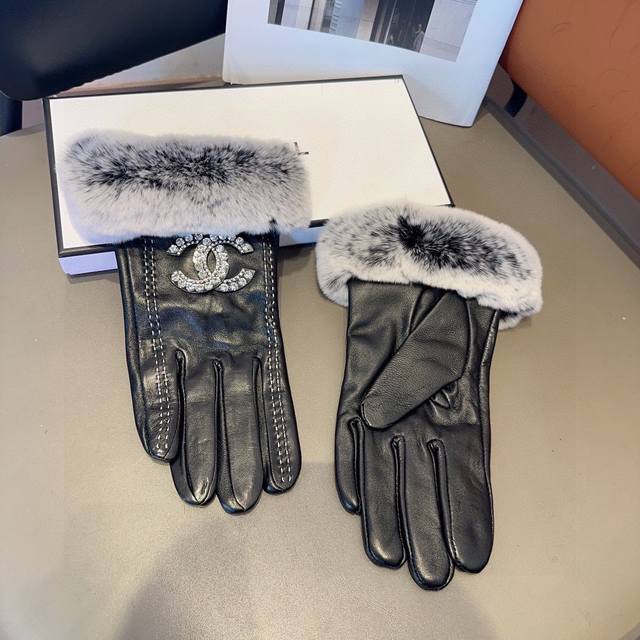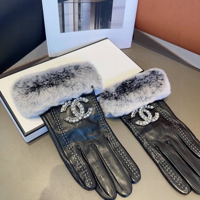 Chanel sheepskin gloves, fashionable gloves, warm and velvet lining for autumn and winter, classic and simple to use, super comfortable and soft, versatile!