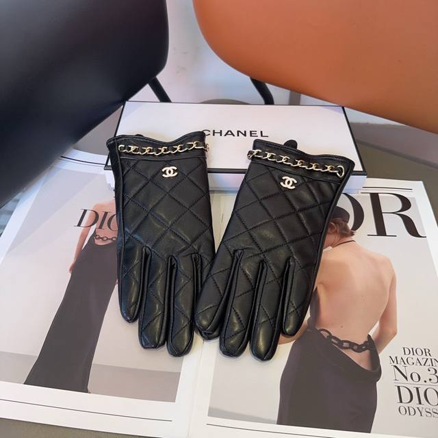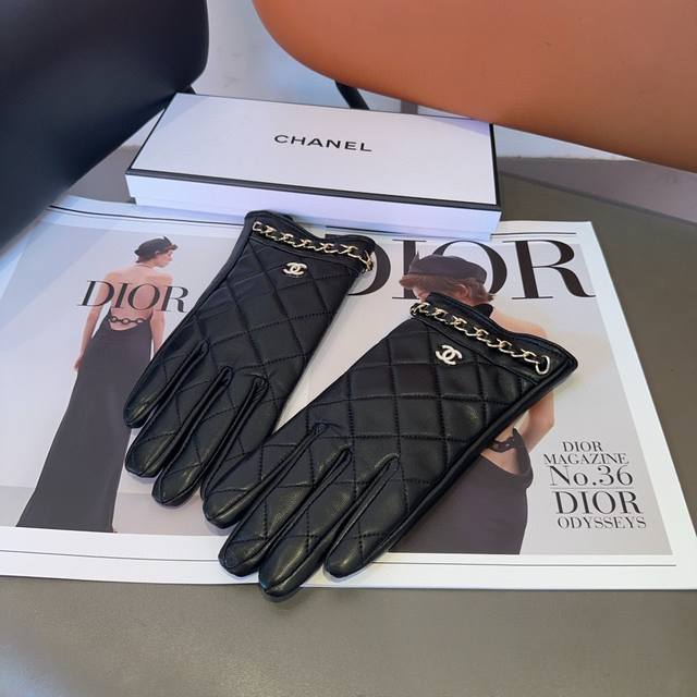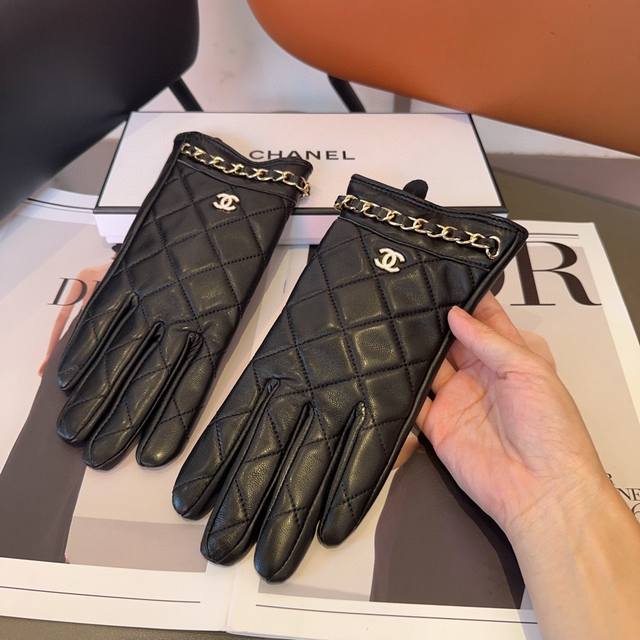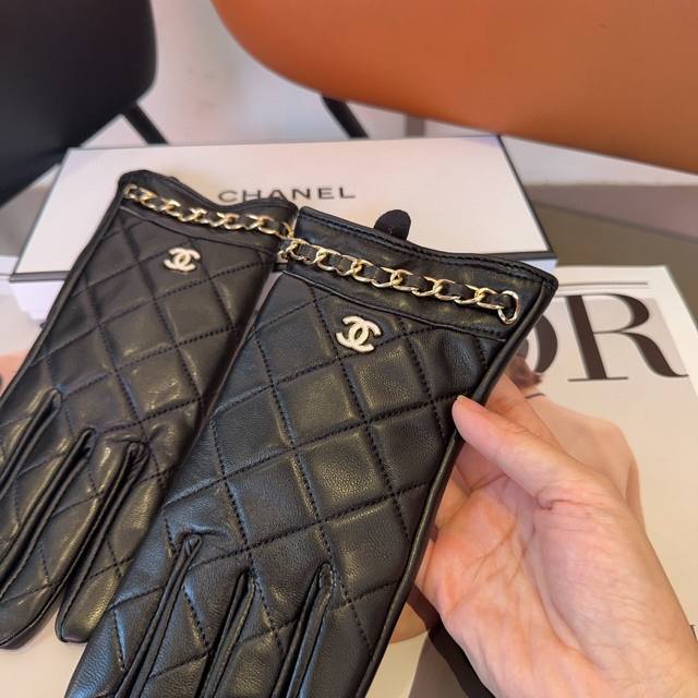 Chanel sheepskin gloves, fashionable gloves, warm in autumn and winter with fleece lining, classic and simple to use, super comfortable and soft, versatile!