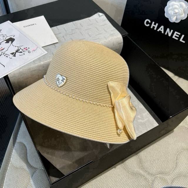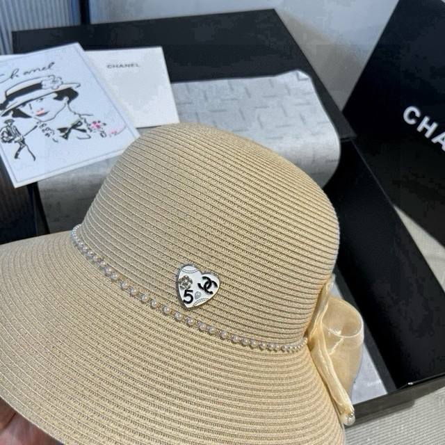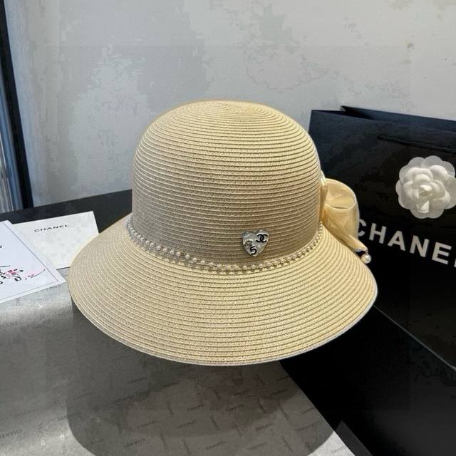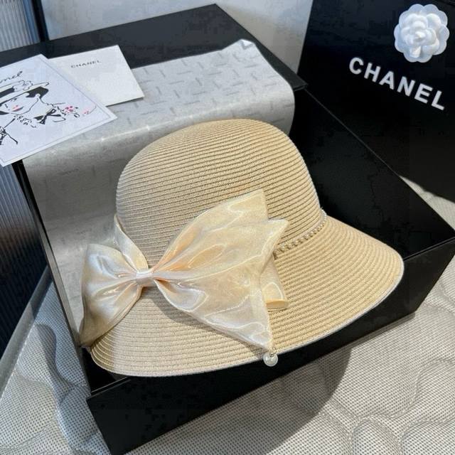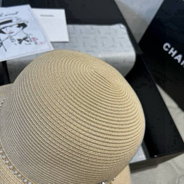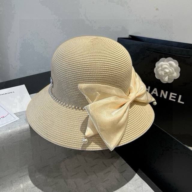 Chanel New Straw-Woven Pearl Ribbon Hat, Detail-Oriented, Simple And Elegant, Ve