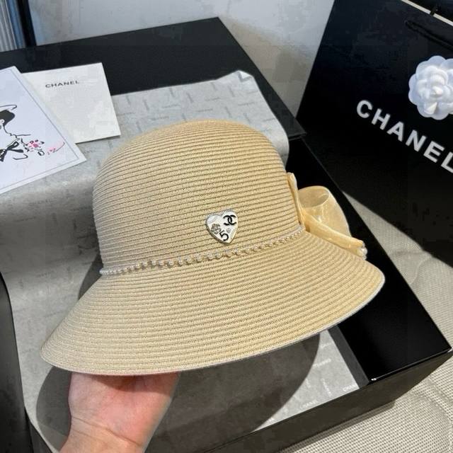 / Chanel straw hat, bow basin hat, lady style PP straw hat, head circumference 57C