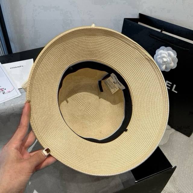 Chanel straw hat, bow basin hat, lady style PP straw hat, head circumference 57Cm