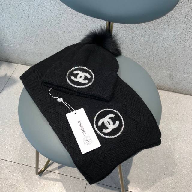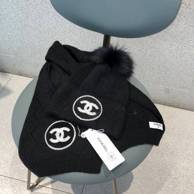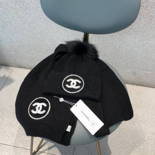 Chanel suit Chanel ladies' hat and scarf suit made of 70% rabbit fur + 30% wool, warm and fashionable, with Chanel pearl logo, it looks more fashionable and high-end!