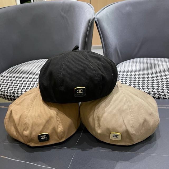 / Chanel women's beret, spring/autumn retro versatile, face-slimming newsboy cap,