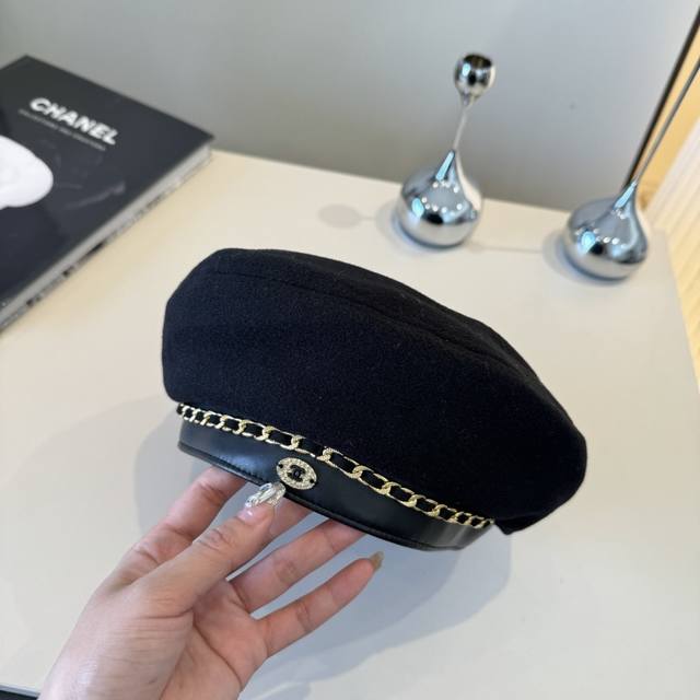 / Chanel wool beret, Chanel-style chain beret, head circumference 57cm DDD