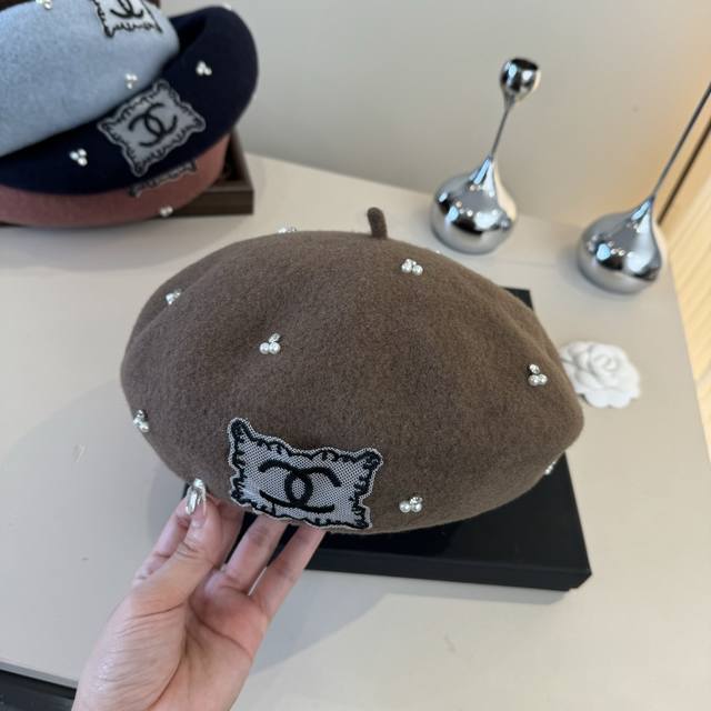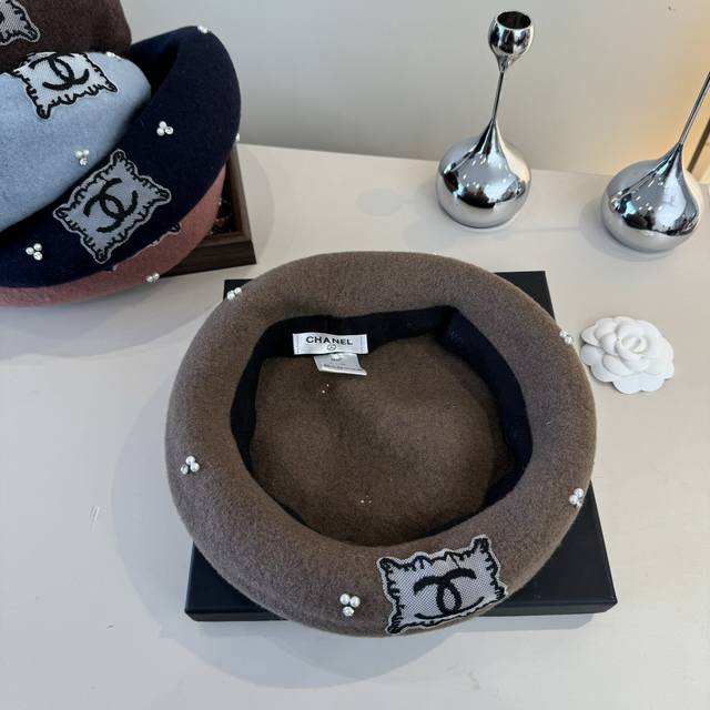 / Chanel wool beret, pumpkin hat, 100% wool fabric, head circumference 57cm