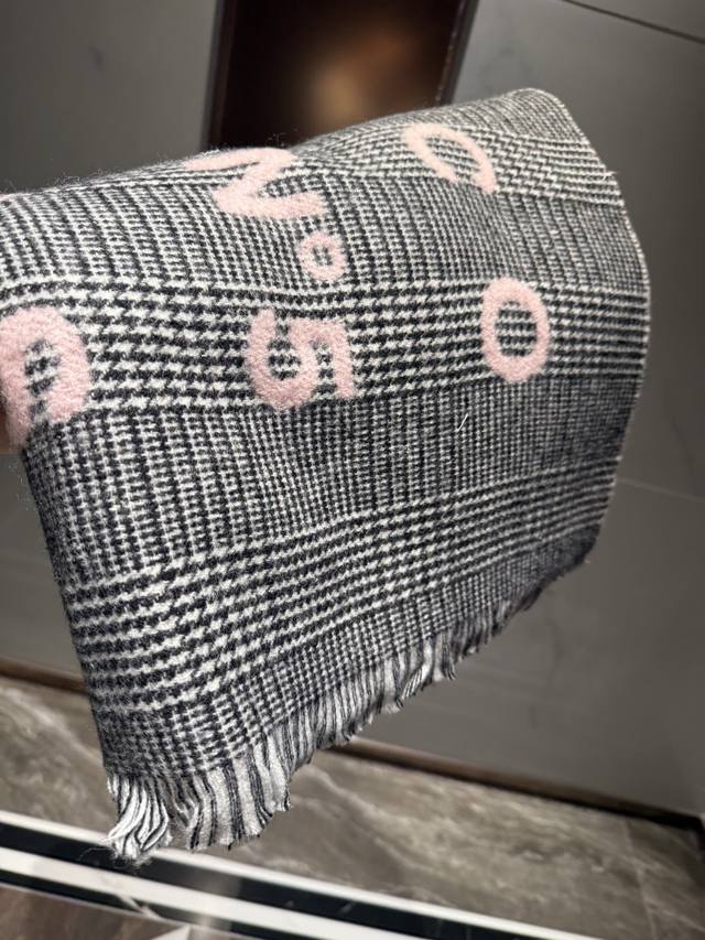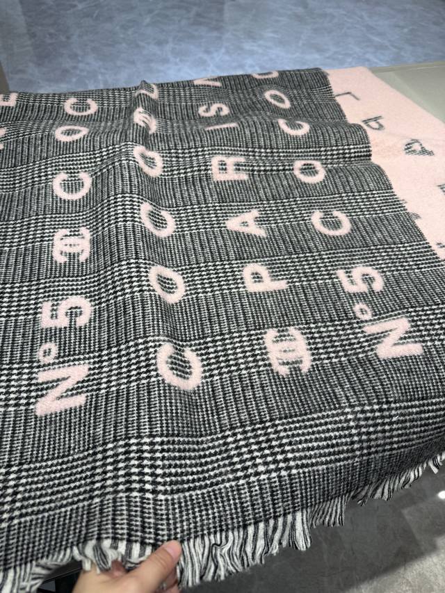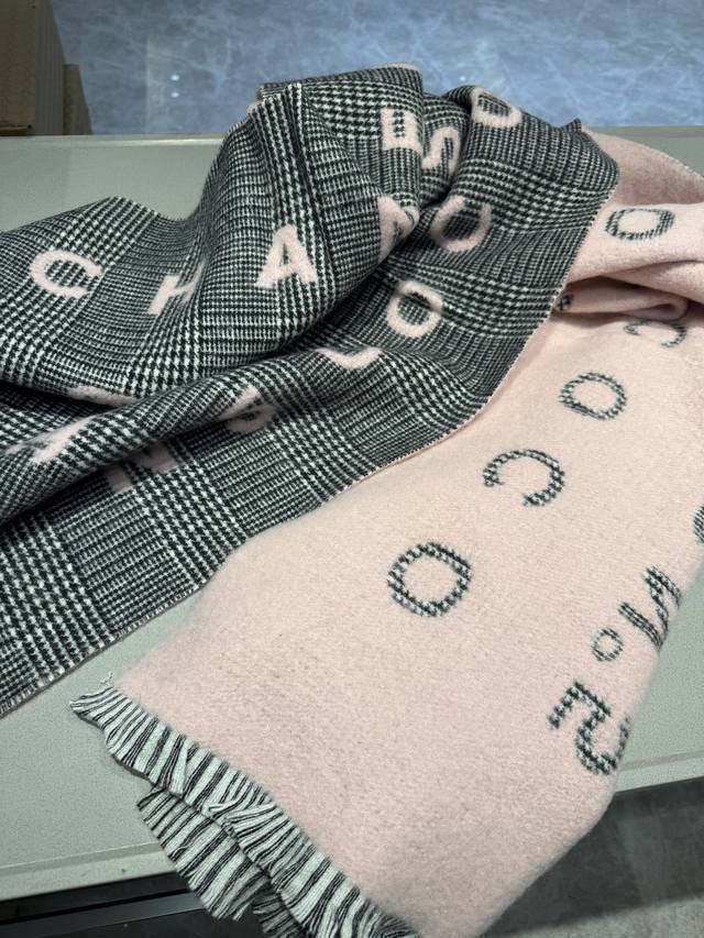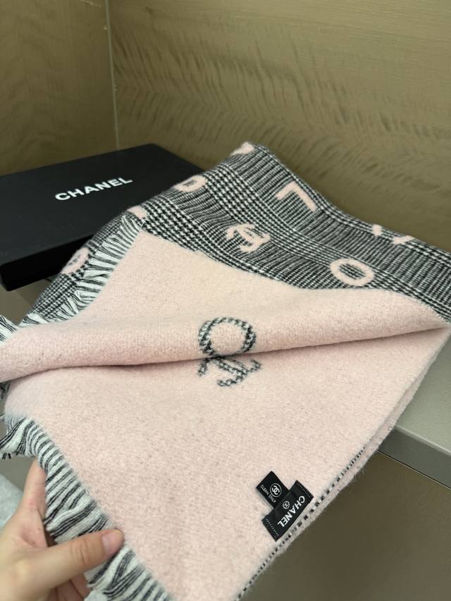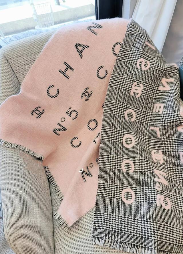Chanel's 2025 new style, the 25 Coco Chanel series, hailed as the most beautiful Chanel piece of 2024, and the most worthwhile to buy. One side is houndstooth, the other is jacquard lettering. It can be worn as a shawl or a small blanket. It looks great just by draping it over your shoulders. It's incredibly beautiful. The Coco series has been brought to its fullest potential by the designer, making it breathtakingly beautiful and timeless. This Chanel piece is so beautiful that the more you look at it, the more you love it. It's very substantial and has a great drape. The design is absolutely gorgeous. It's incredibly comfortable to hold. It costs 10,000 RMB through personal shoppers. It's made of 100% cashmere, soft and skin-friendly. Specifications: 74.4X194.4Cm including tassels. Length: