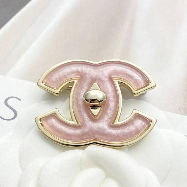 Chanel's hot-selling brooch is back! Chan 25 Pink Double C Backpack Buckle Brooch. This pink glass brooch with a hint of pearl is crystal clear and dreamy, adorable and full of girlish charm! The classic double C design paired with a light gold backpack buckle creates a soft, matte-gold look that exudes sophistication.