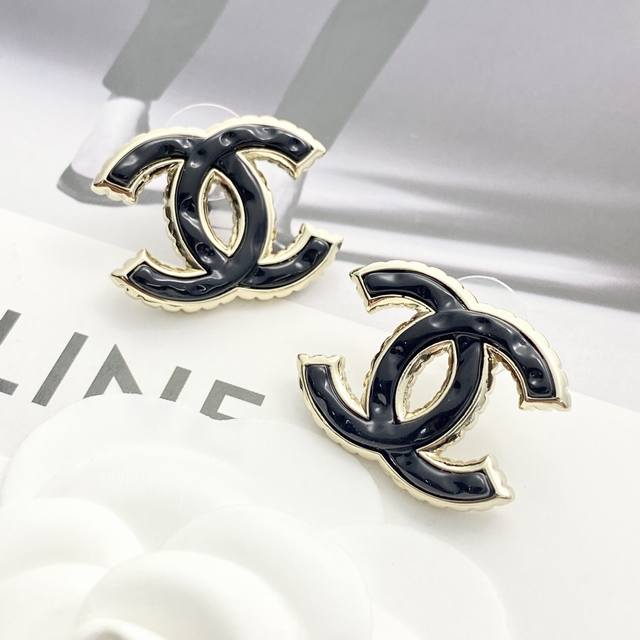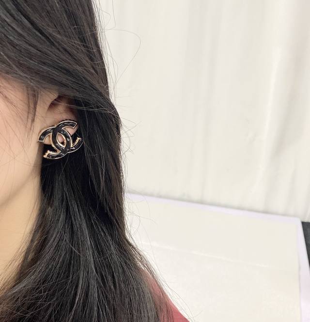 Chanel's hot-selling earrings are now available! Chan 23 black and gold double C enamel earrings. Classic elements, large double C, low-key and classic. Simple and elegant, versatile and suitable for everyone.