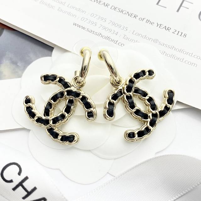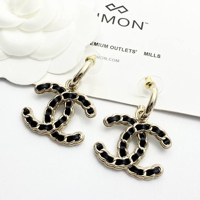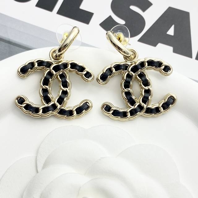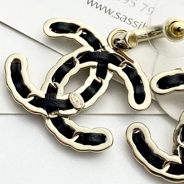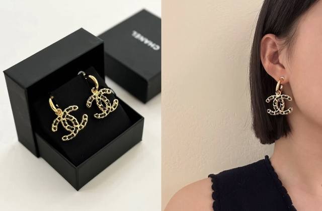 Chanel's hot-selling earrings are now available. Chan 24 black and gold leather double C hook earrings. Spiral leather craftsmanship, paired with a mix of lambskin and chain, creates a delicate leather. Cool and uninhibited, they offer a vintage and classic feel. The light gold accents create a perfect retro feel, perfect for everyday wear and perfecting the autumn/winter vibe.