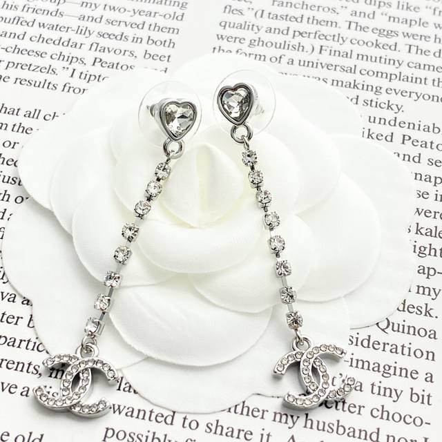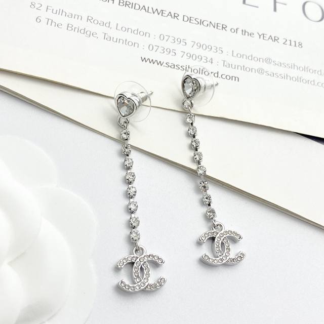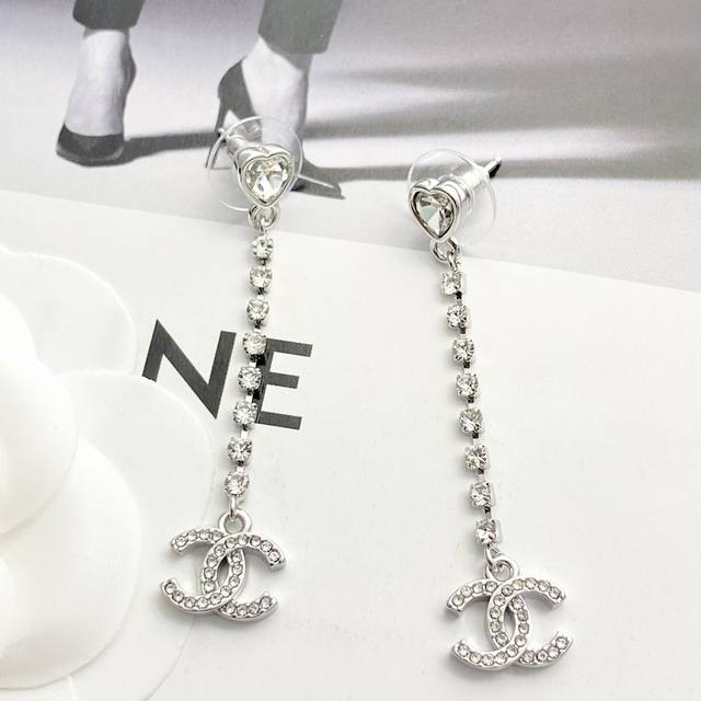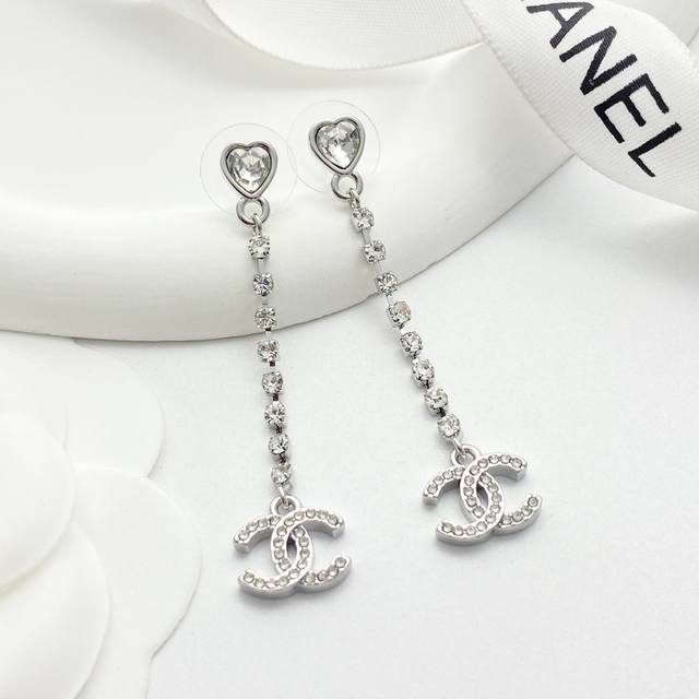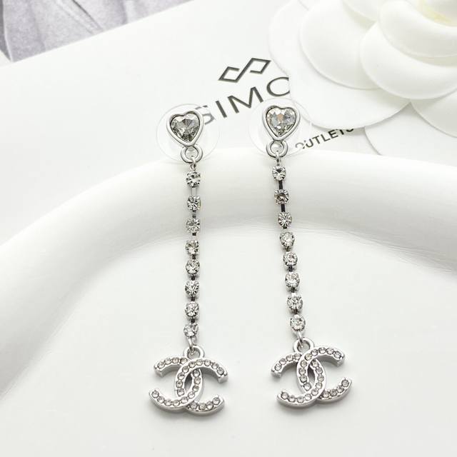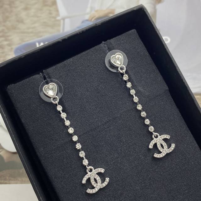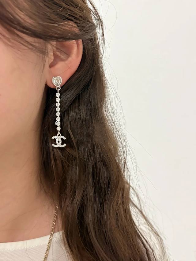 Chanel's hot-selling earrings are now available! Chan 25 silver tassel rhinestone Cc earrings. Exquisite diamonds are arranged into graceful lines, and the silky draping tassels shimmer with a vibrant and elegant touch. So beautiful and exquisite! A diamond-studded double C hangs from the bottom, swaying gracefully by the ear, showcasing elegance and flair! She exudes a sense of affluent chic everywhere she goes.
