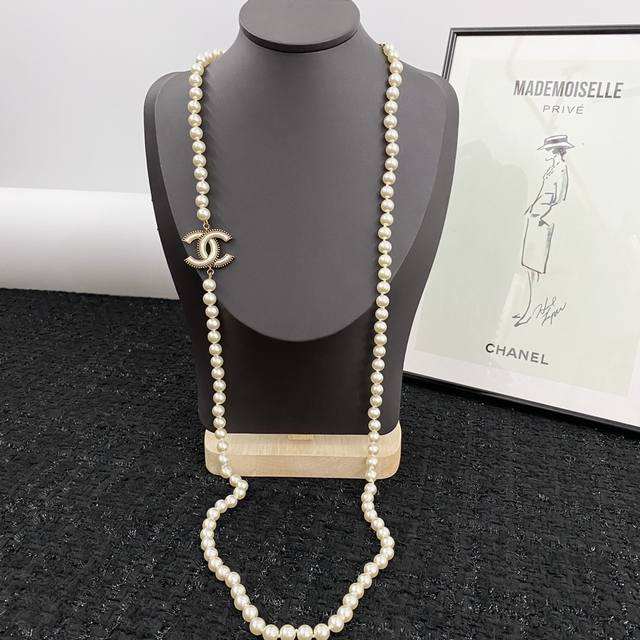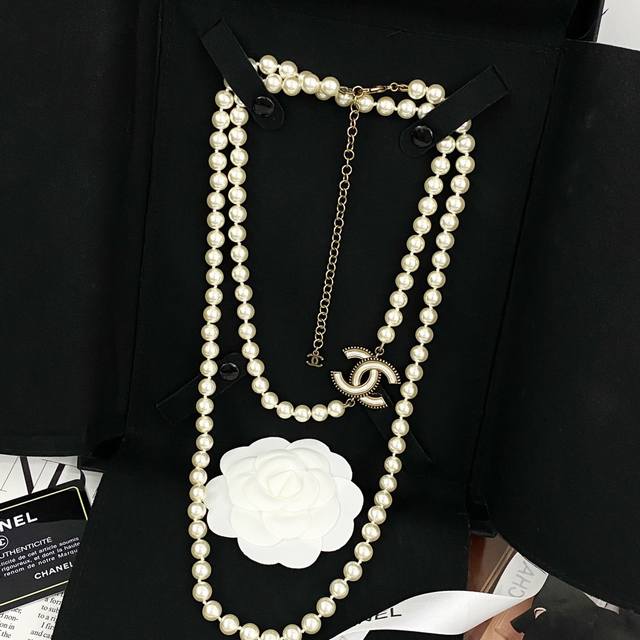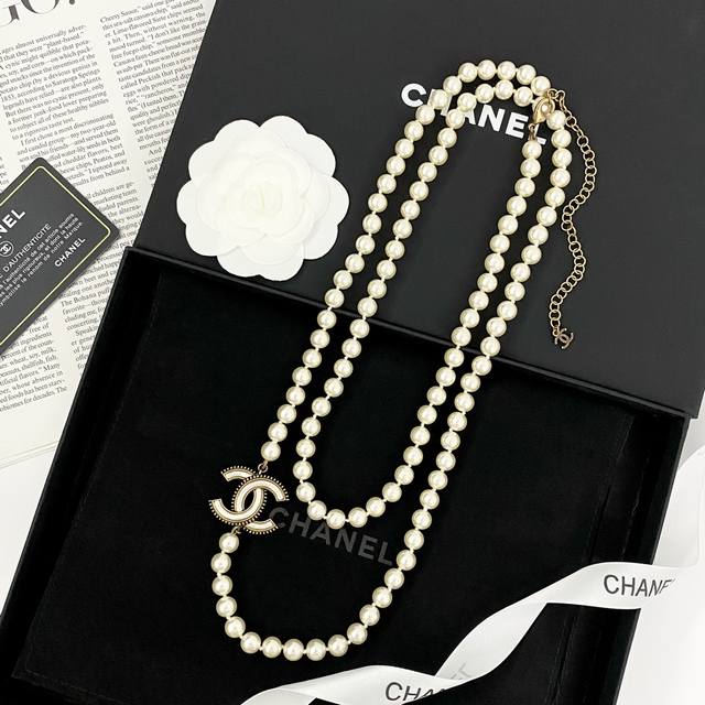 Chanel's hot-selling necklace, the Chan 24 Vintage Enamel Double C Pearl Sweater Necklace, is a stylish and elegant piece. The pearls are rich and lustrous, instantly conveying their elegance and luxury. This necklace is incredibly versatile! It can be worn alone or in pairs. Perfect for everyday wear or formal occasions, it's the perfect blend of style and classic elegance.