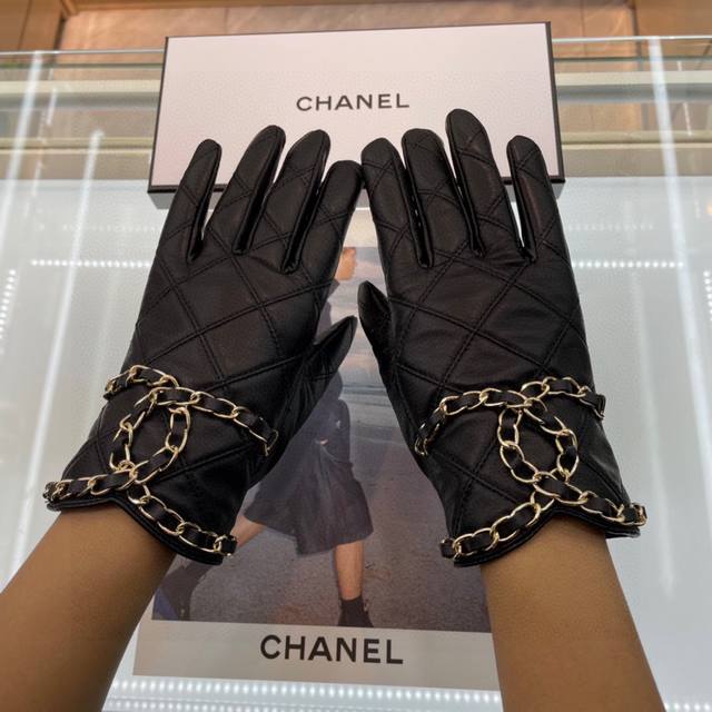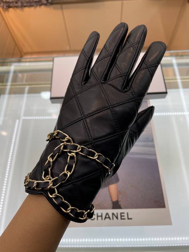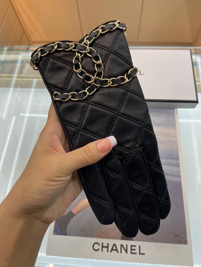 Chanel's latest chain fully hand-woven double C touch screen gloves, made of imported Ethiopian sheepskin, silk lining is very cost-effective,, goddess must-have