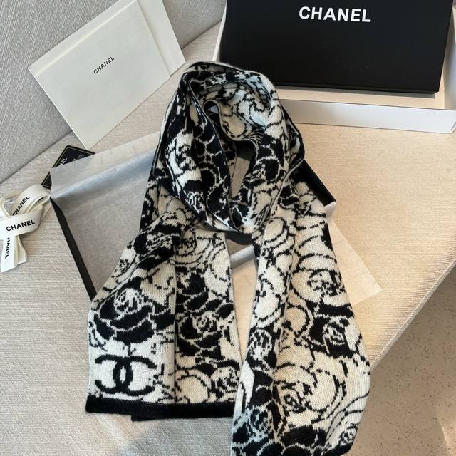 Chanel's new camellia cashmere knitted long scarf is absolutely gorgeous! [crying emoji] A top-quality, high-end item, currently available in boutiques. Made from imported pure cashmere with fashionable silver thread trim, this knitted wool scarf is incredibly beautiful and flattering. It's versatile and looks amazing on any skin tone. See for yourself if you think it's beautiful! The scarf measures 80*200cm and is made from 100% selected pure cashmere. A perfect gift!