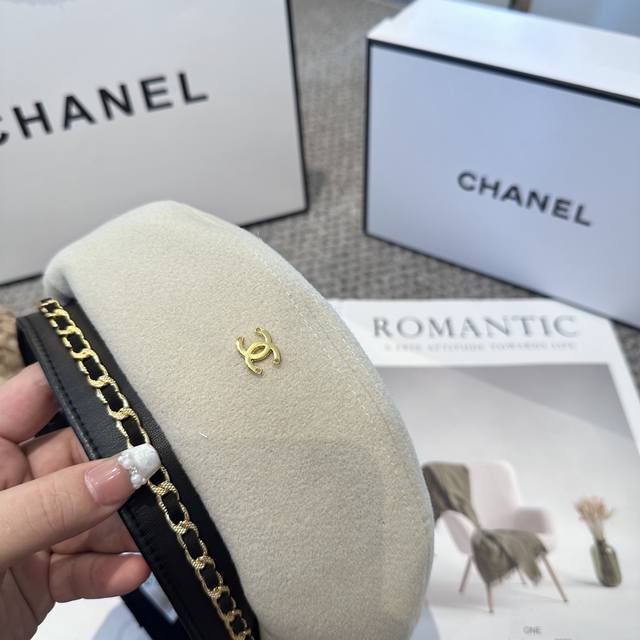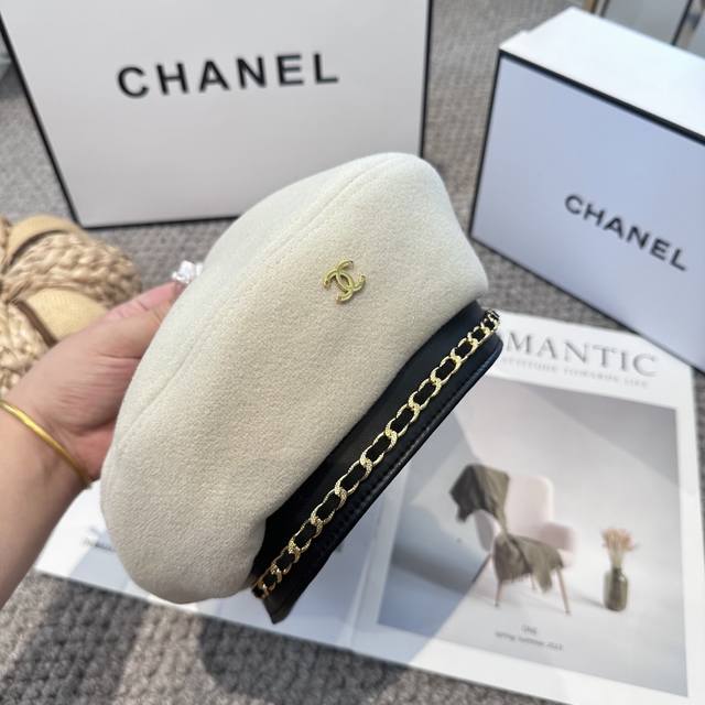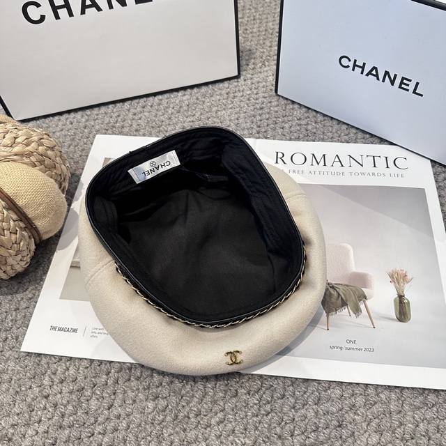 Chanel's new chain beret, featuring a delicate and simple small logo. A Chanel-inspired high-end custom fabric