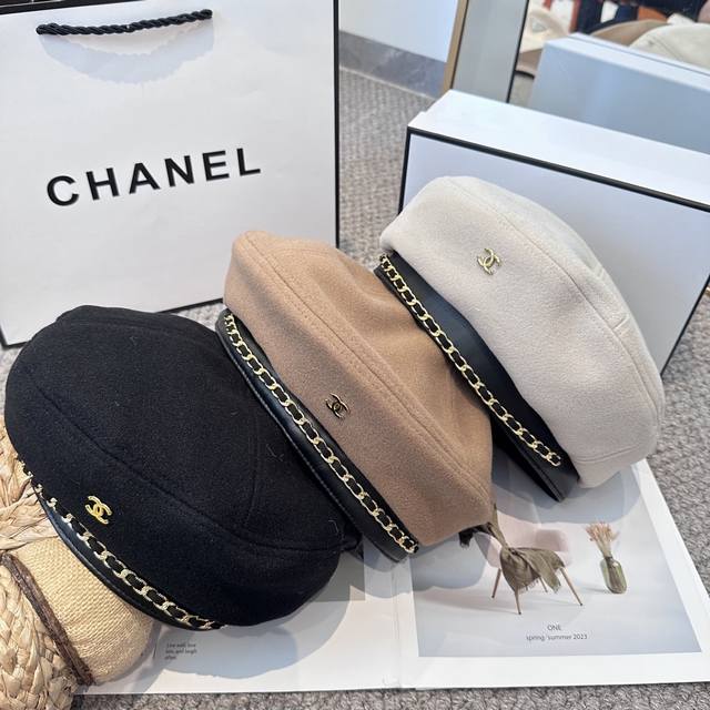 / Chanel's new chain beret, featuring a delicate and simple small logo. A Chanel-i