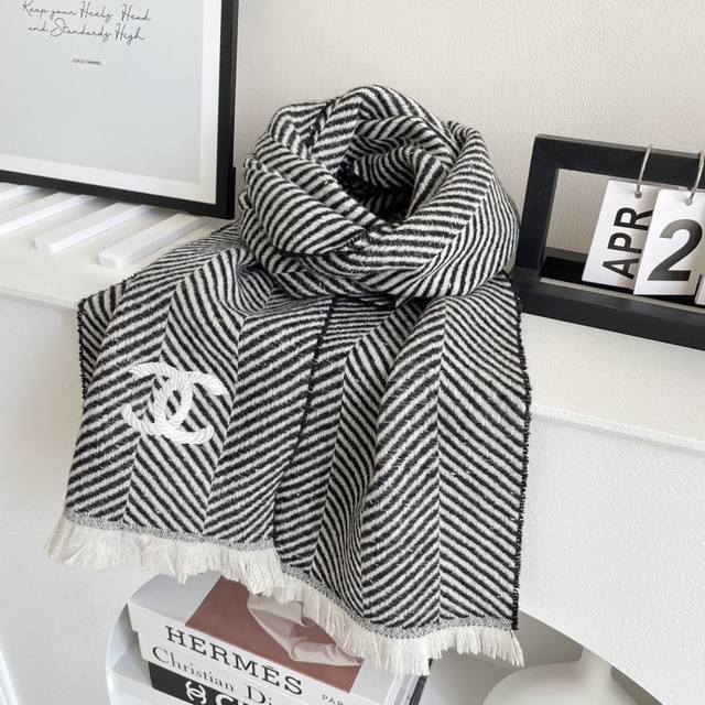 Chanel's new collection is here, girls, get out there and rock the streets! The black color scheme is truly timeless and classic. Not that tacky bleached white, but a natural tone with a touch of sophisticated beige. ~100% pure cashmere~ This 35*180cm scarf is irresistible, with a cloud-like softness. If you see it in person, you'll know what makes any other scarf pale in comparison. It's a definite star of 2025! It's so soft against the skin, it won't even itch!