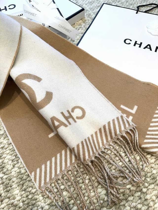 Chanel's new double-sided color-blocked jacquard scarf is predicted to be a huge hit! The double-sided jacquard design with completely opposite colors and patterns on both sides is truly ingenious. The oversized brand logo and double C color-blocking embellishments adorn the entire scarf, making it incredibly luxurious. The fabric is absolutely stunning. 100% Merino wool, considered the pinnacle of wool quality, it's incredibly soft and gentle, suitable for both men and women, and goes with everything. A must-have! Size: 184*34cm.