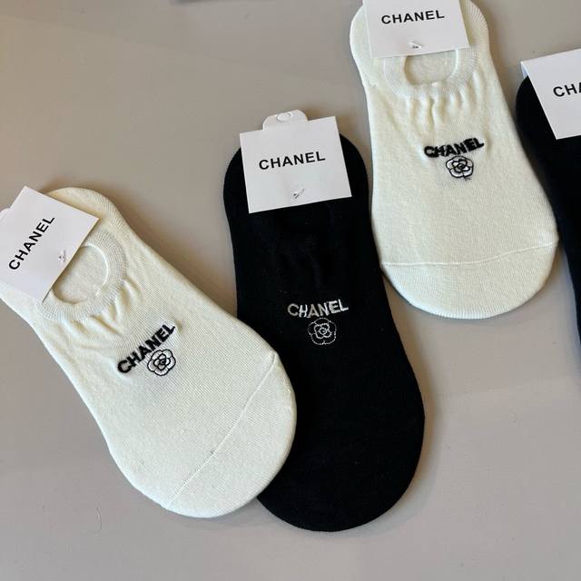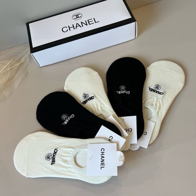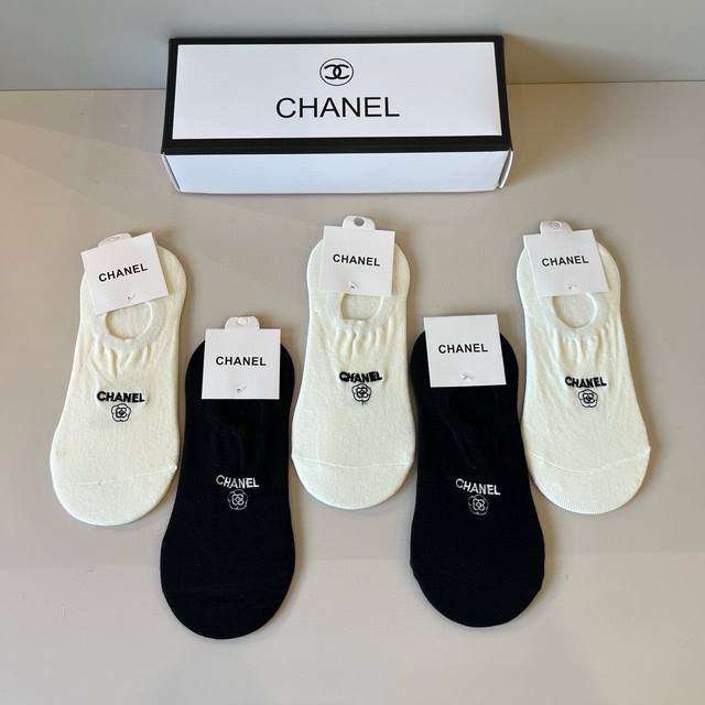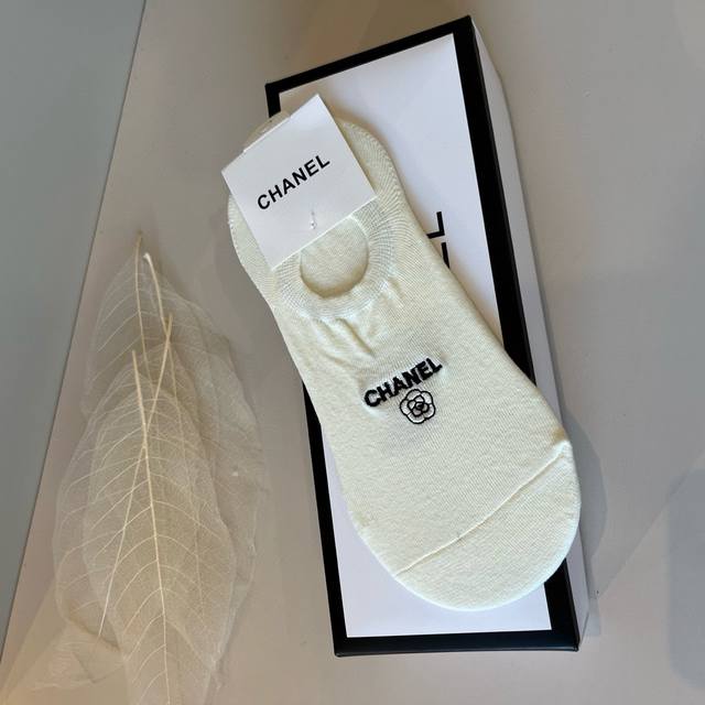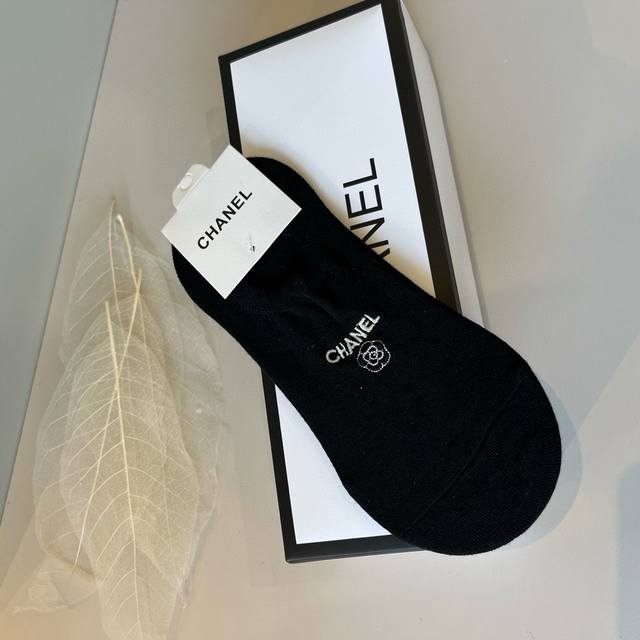 Chanel's new early fall boat socks, classic style, fashionable and advanced! A must-have for fashionistas, this brand is available in versatile colors. 5 pairs per box.