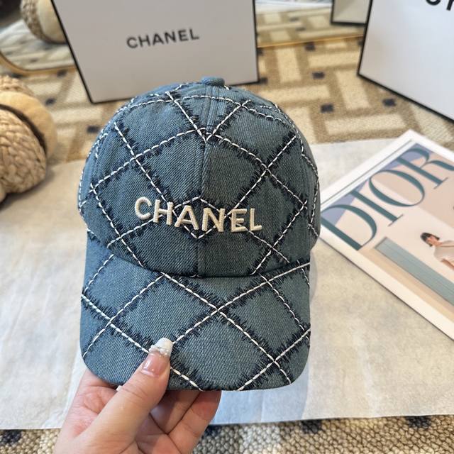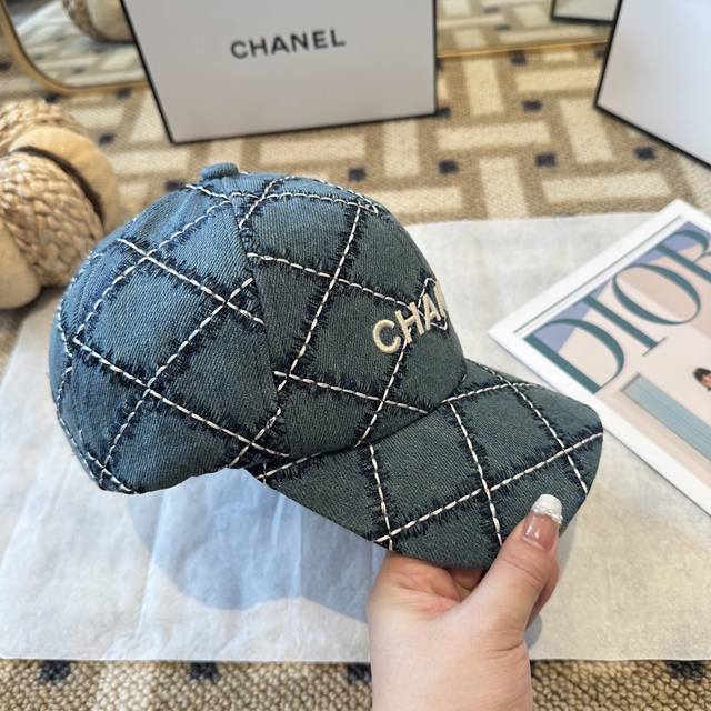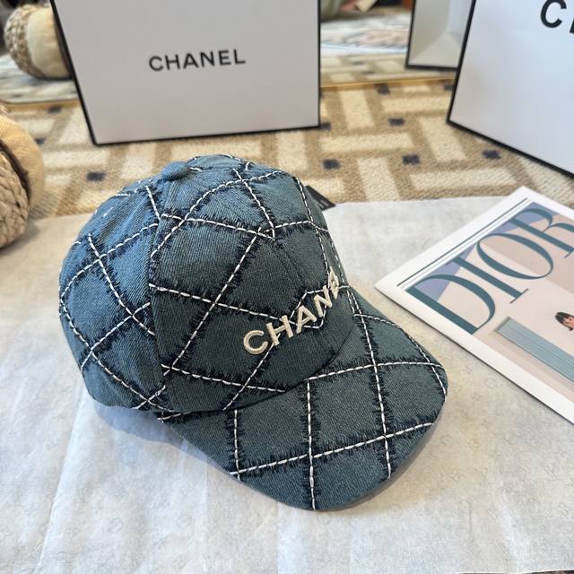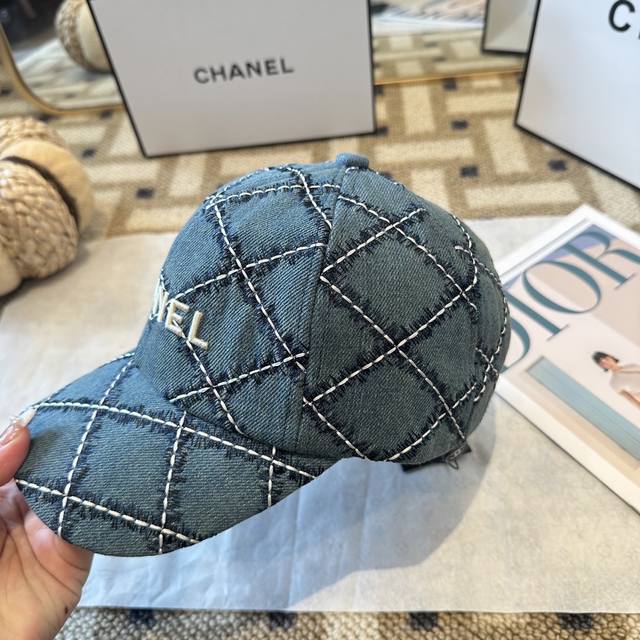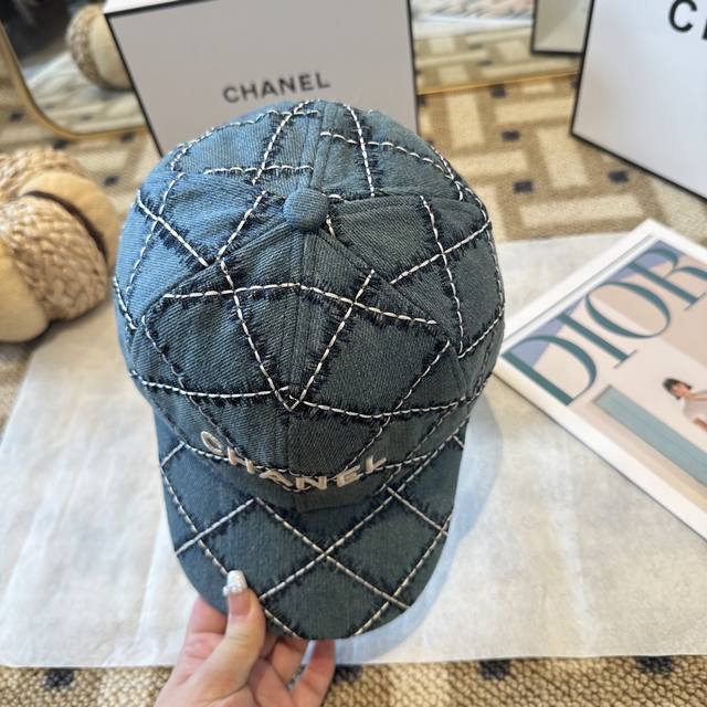 Chanel's new high-end denim quilted baseball cap, perfect for sun protection and easy to match. High-quality original version.