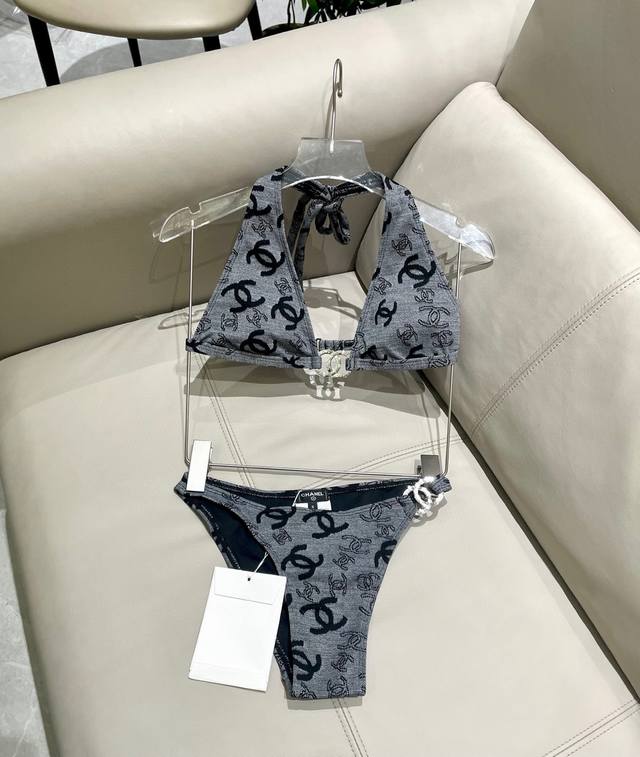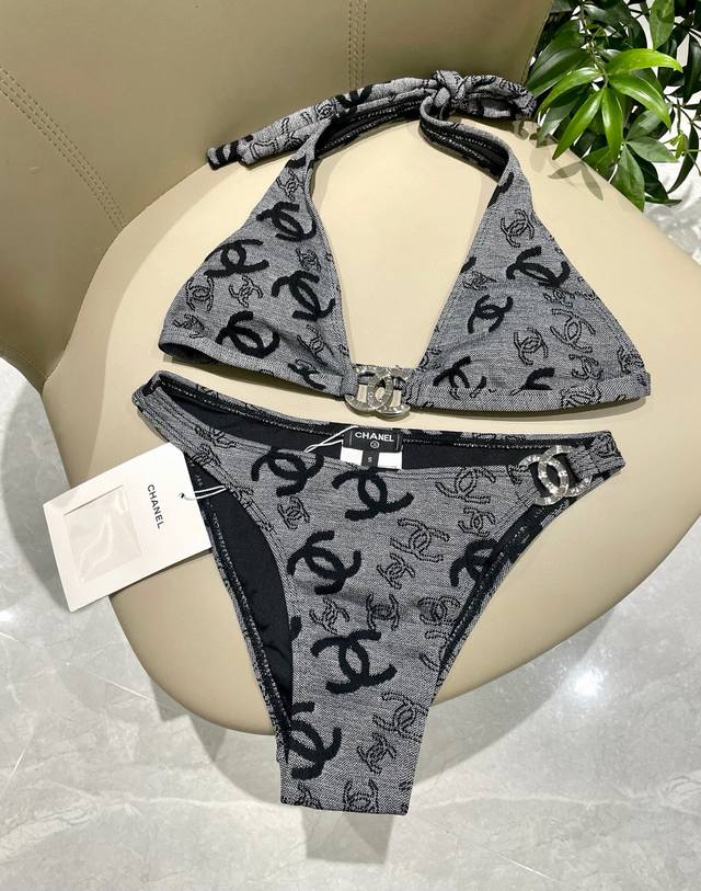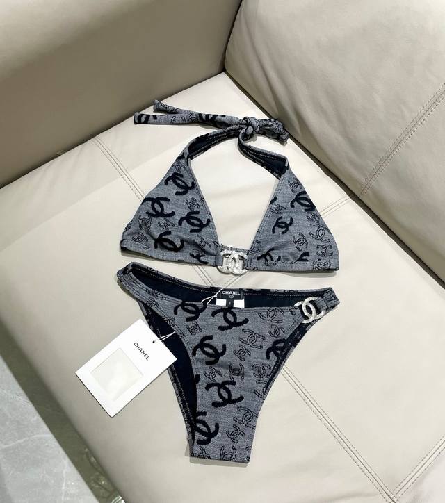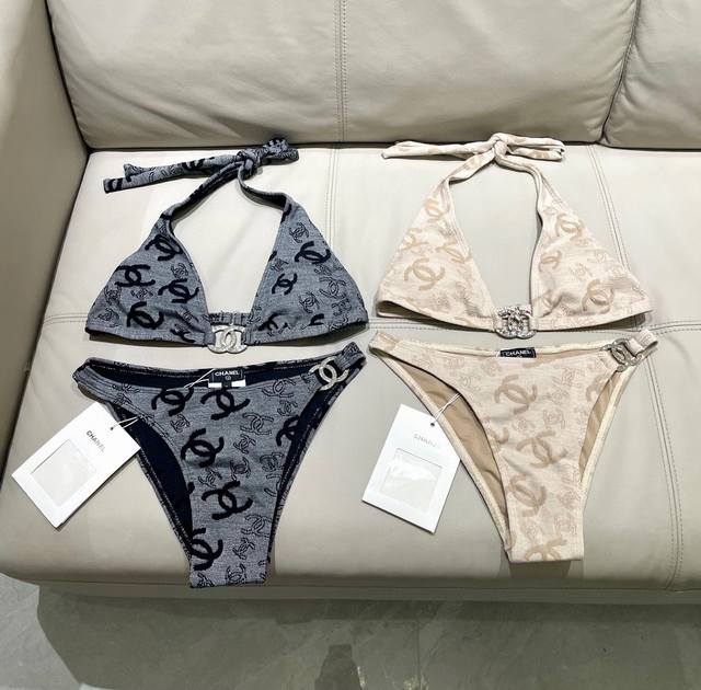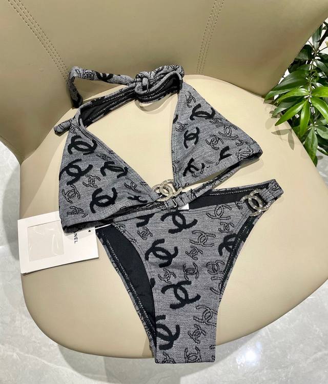 Chanel's new jacquard two-piece swimsuit is suitable for various occasions. It can be worn as an inner or outer layer, whether at the beach, swimming pool, hot spring, water park, or rafting. Fabric: Breathable and comfortable. Quick-drying and elastic, this swimsuit is gentle on the skin and easy to clean. Sizes: S, M, L, XL.