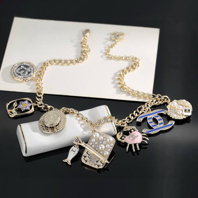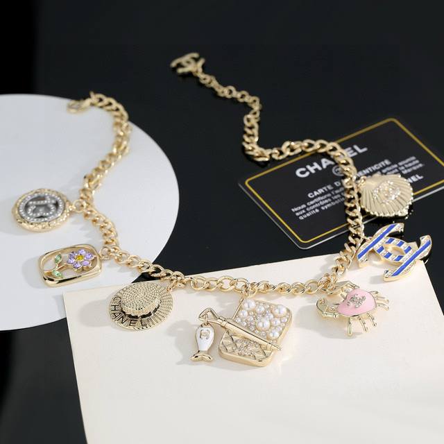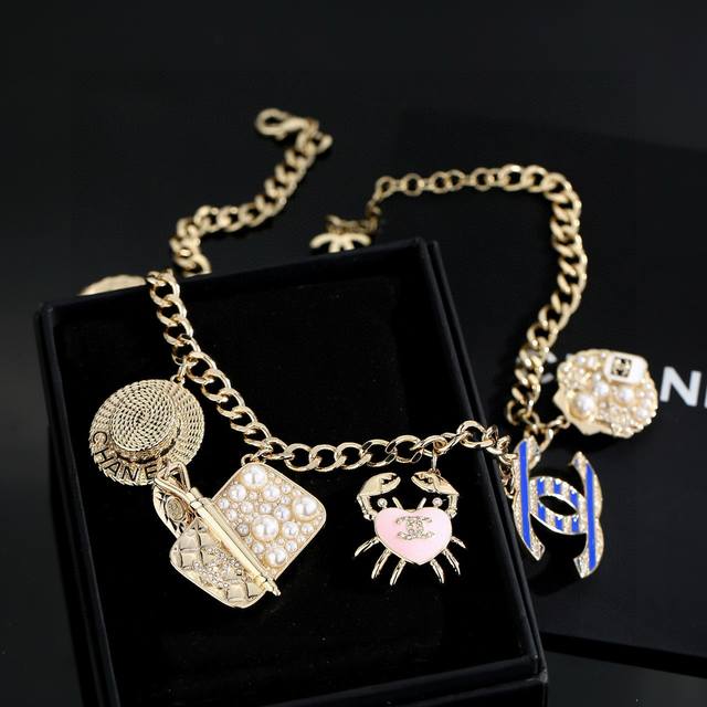Chanel's new Ocean Collection necklace is a delicate and elegant piece, handcrafted with gold finishes. The gold-finished Ocean Collection design is incredibly rare, featuring shell, crab, and fish double C pendants, each one incredibly exquisite! It's incredibly charming and lively, perfect for spring and summer girly moments! The gold-finished metal accents exude a sophisticated retro feel. The necklace automatically adjusts in length, and the lobster clasp makes it easy to wear. A perfect match for every woman! Get this necklace now!