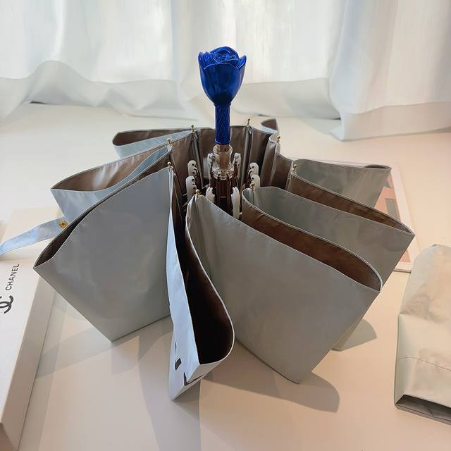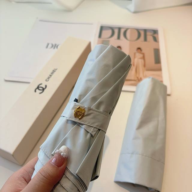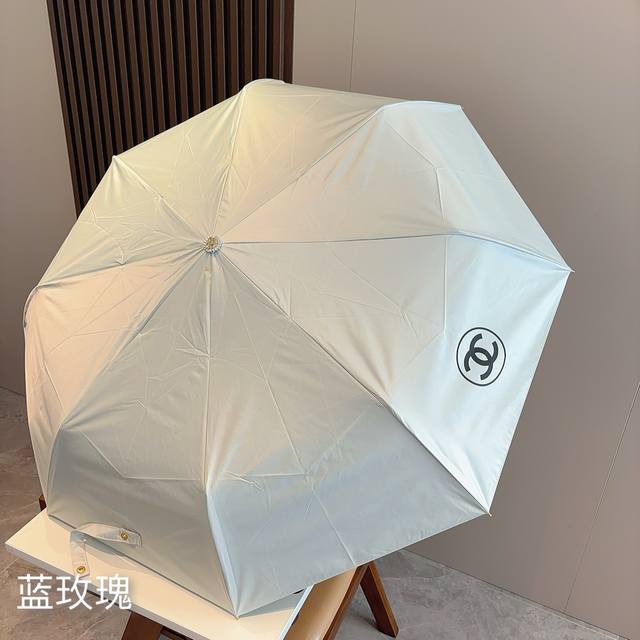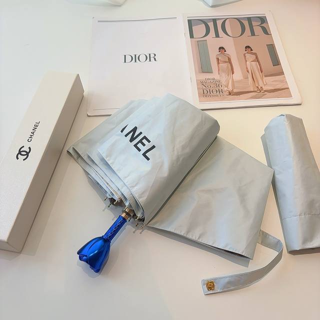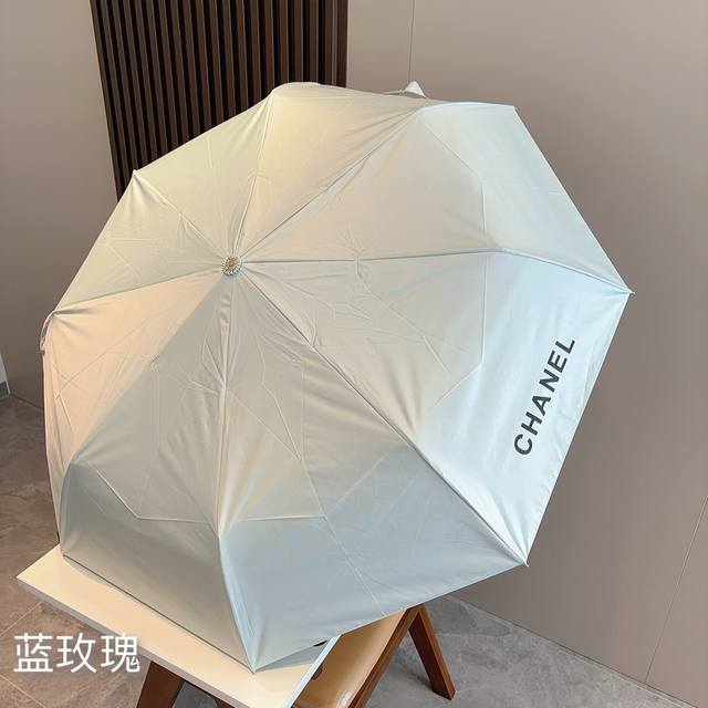Chanel's new rose-shaped handle tri-fold folding umbrella uses imported UV-resistant fabric from Taiwan. 2 colors (