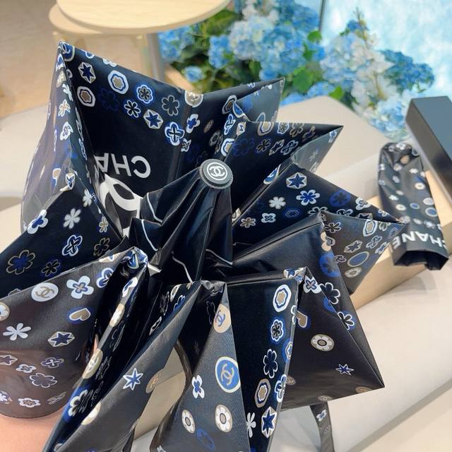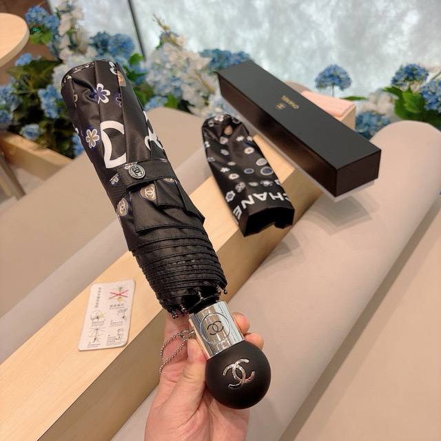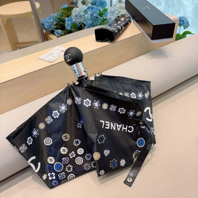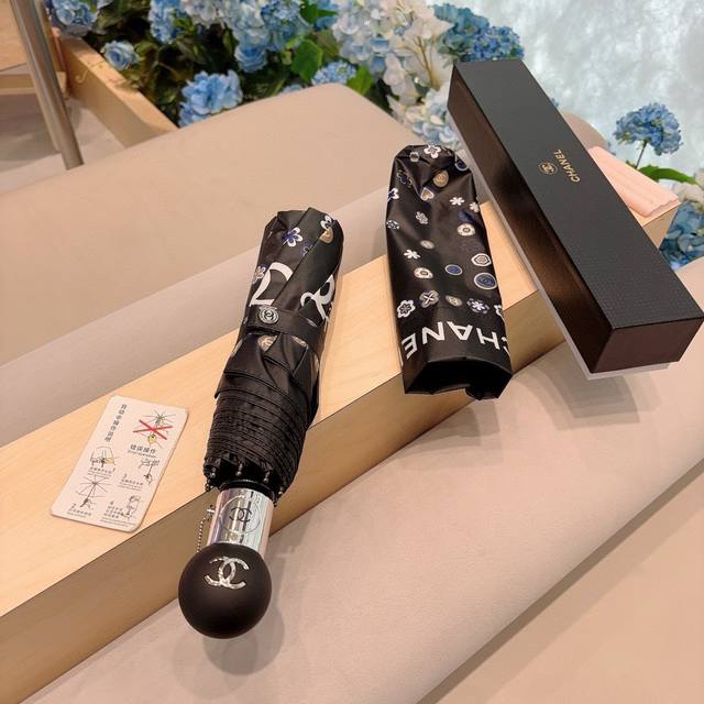 Chanel's new tri-fold automatic folding umbrella is exquisitely crafted, stylish, and stylish! UV protection is a must-have! Available in 3 colors (