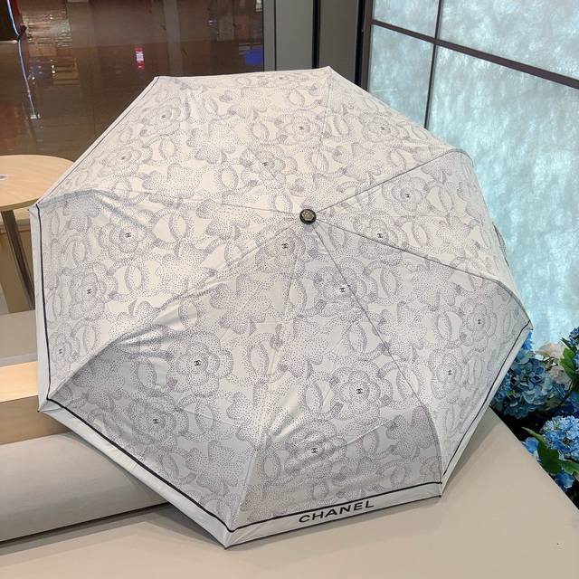 Chanel's new tri-fold automatic folding umbrella is exquisitely crafted, stylish, and stylish! UV protection is a must-have! Available in 2 colors (