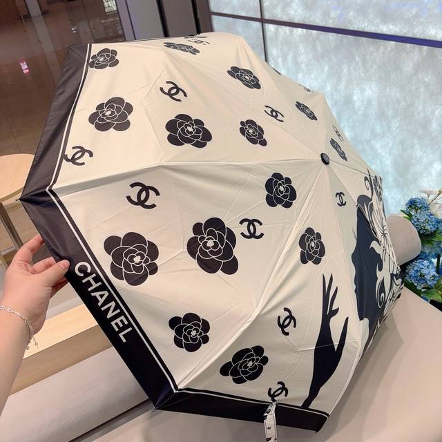 Chanel Chanel tri-fold automatic folding umbrella uses Taiwan imported UV anti-u