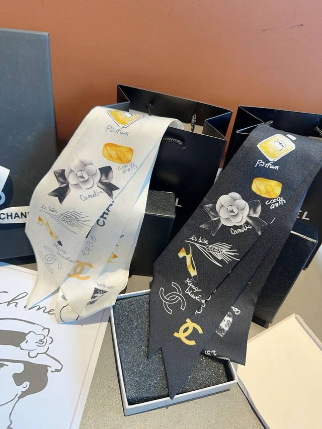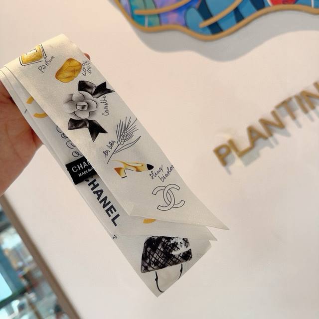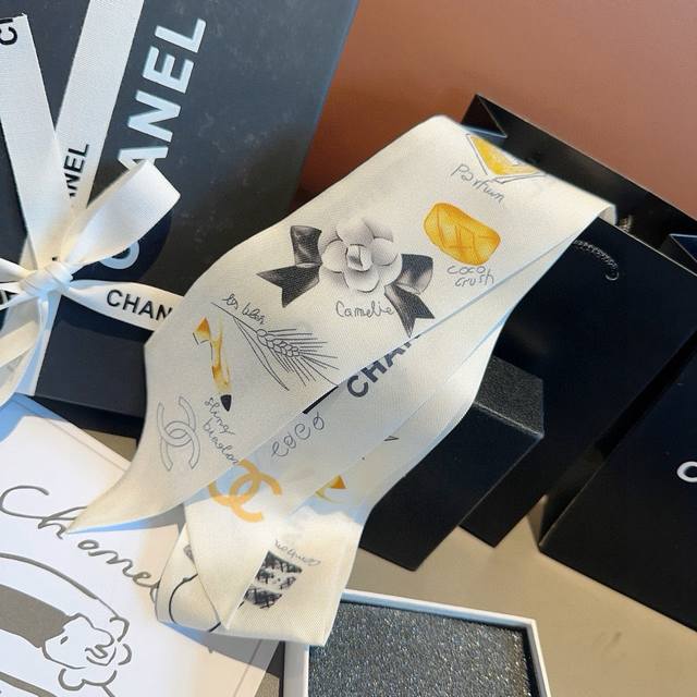 Chanel's Twilly scarves are here! True to their name, these little darlings are here! Everyone's got three, and I'm not stopping them. I haven't seen such a beautiful Twilly in ages! They're truly stunning! A must-have for any style, there aren't many. You won't always have them. They're incredibly practical, perfect for tying your hair, tying your bag, and so much more... They're so unique, I'd rather not have them all. Material: 100% silk twill. Size: 120cm x 6cm.