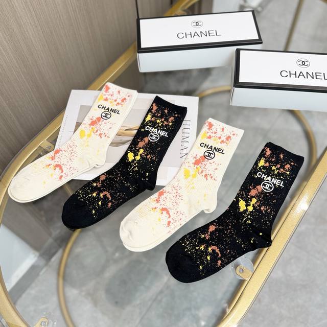 Comes in a box of four pairs of Chanel's popular mid-calf socks in the tall version. They are so beautiful! They are a must-have for fashionistas. They are super stylish and fashionable when paired together. Recommended! A must-have fashionable item!