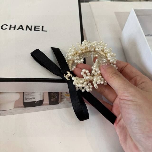 Chanel's latest mini pearl hair tie, super pretty! Exudes elegance, a must-have for any fairy-like girl