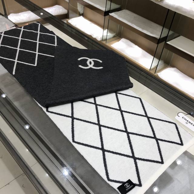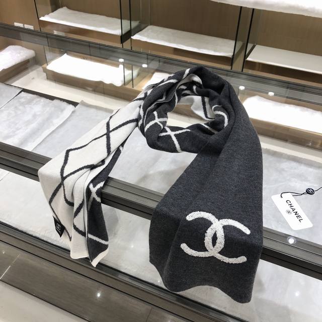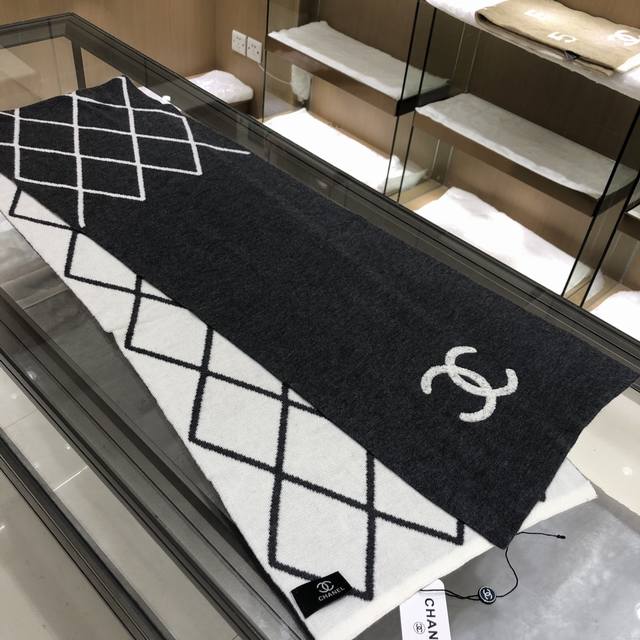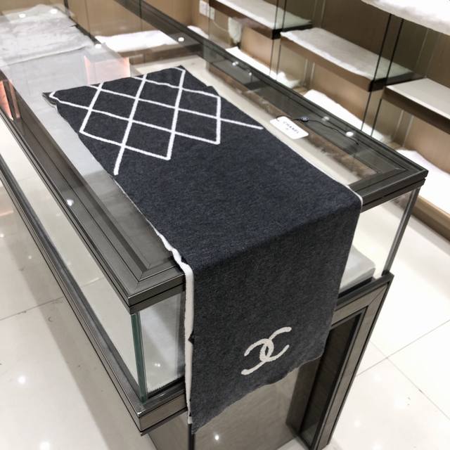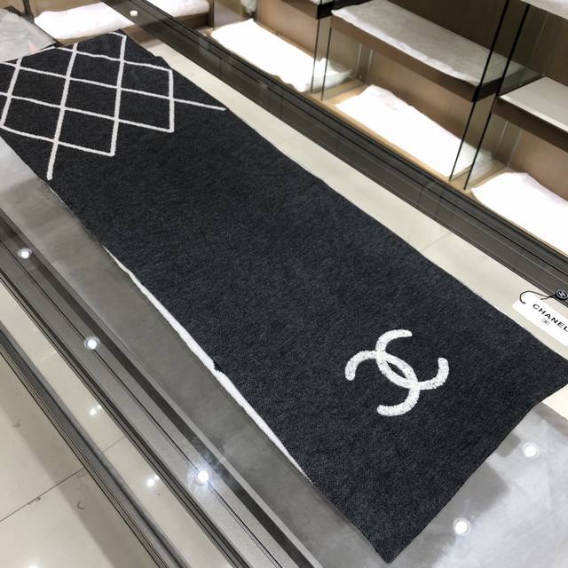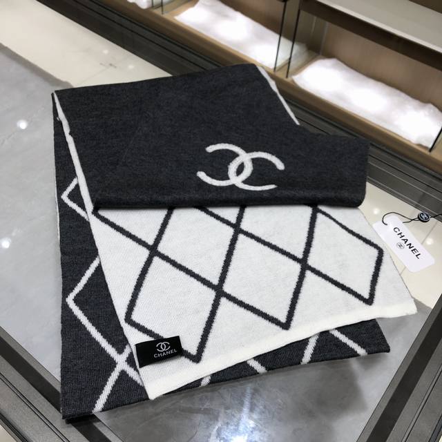 Dark gray Chanel classic diamond design double-sided color new cashmere knitted scarf original craftsmanship