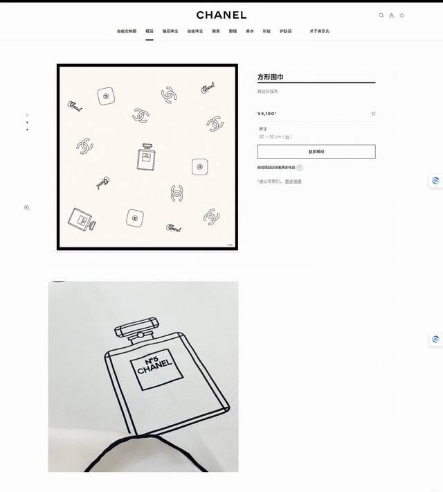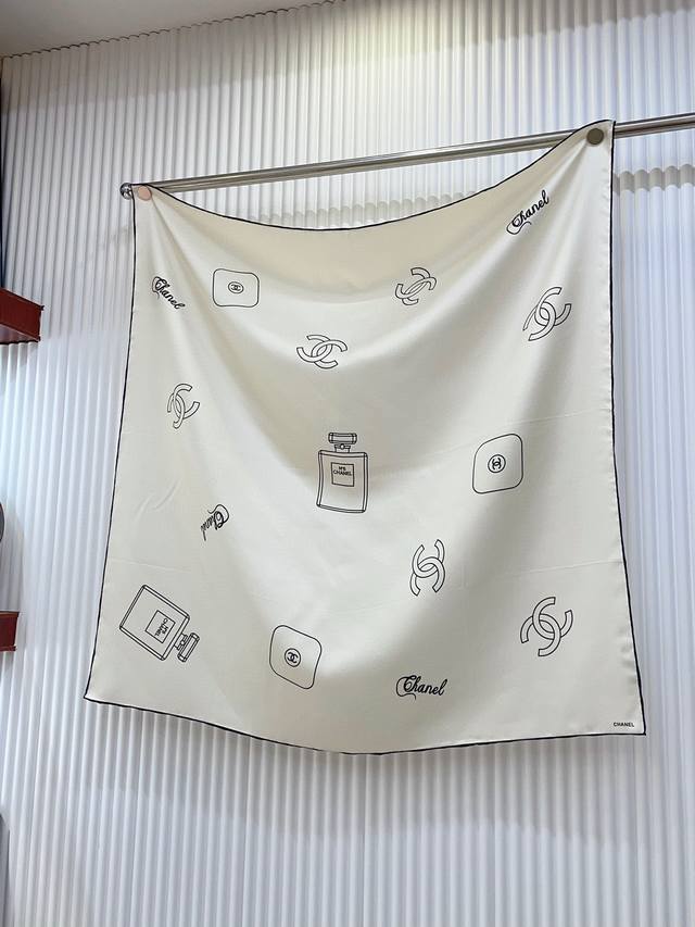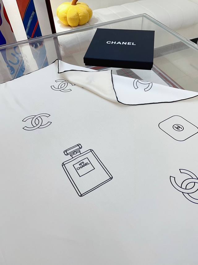 Elegant and stylish! This charm is definitely the top-notch quality that only an artistic master can create. I admire Chanel designers so much; their products are truly stunning! I absolutely love this kind of beautiful tonality! I'm truly captivated by this high-end style! A truly wearable, high-end piece! It goes with everything and elevates everything! It's hard to describe the texture and beauty; it's a completely aesthetically pleasing piece that any woman with a good sense of style will understand. There are so many things to admire about Chanel, and the beauty of this piece is truly worth savoring! Size: 90*90cm twill silk square scarf!