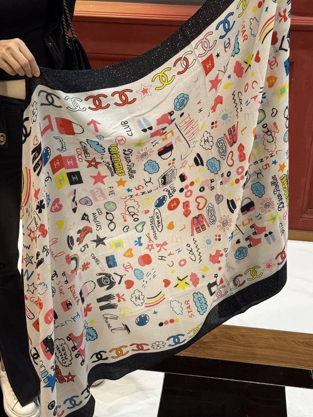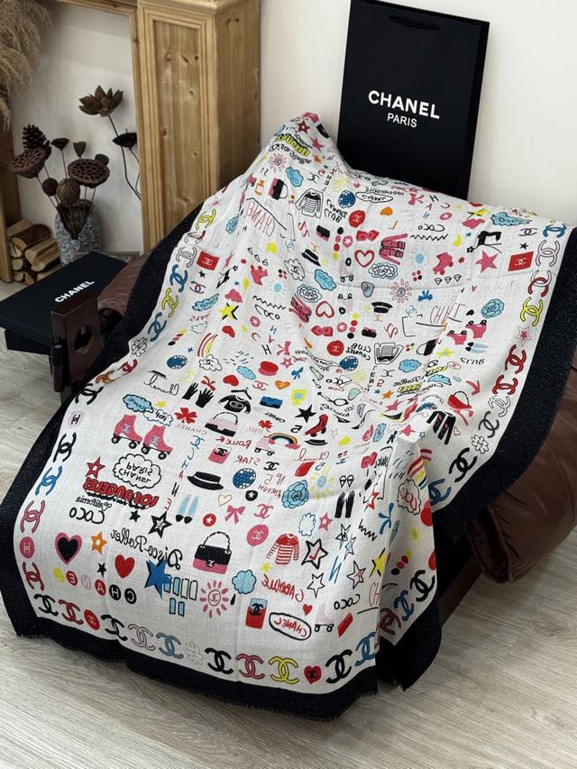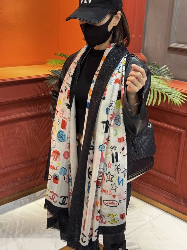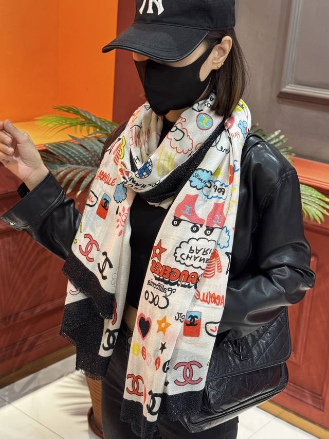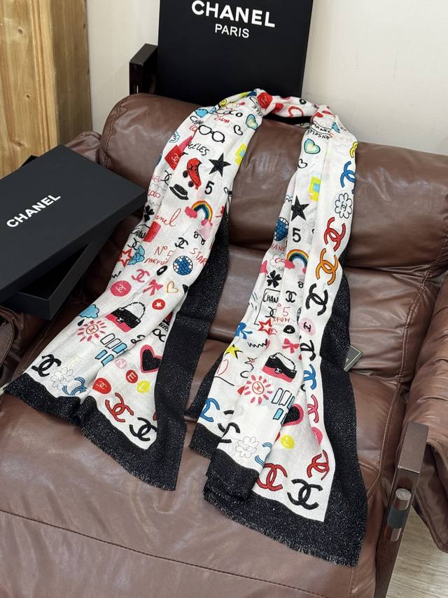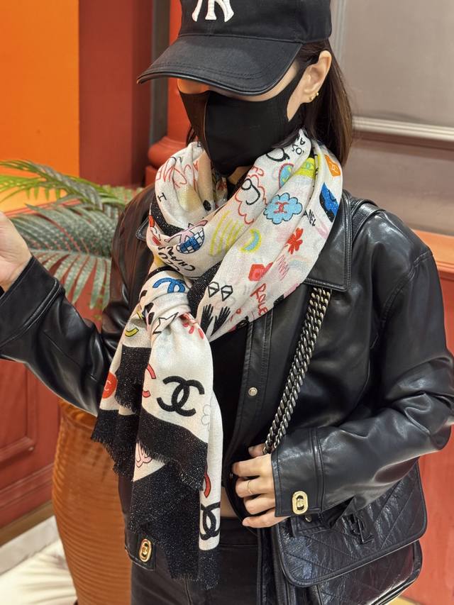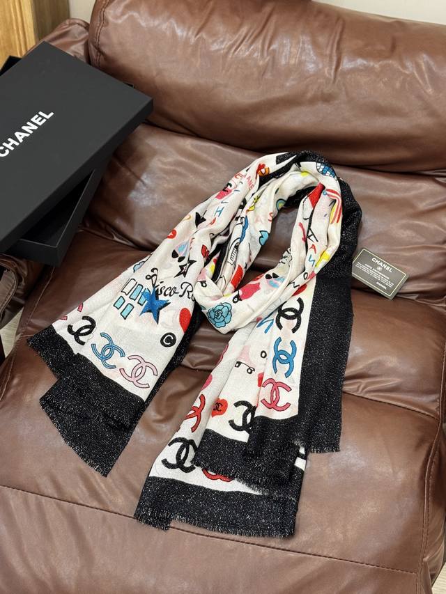 Glowing Scarf, 2025 Fall/Winter Ready-to-Wear Collection - Chanel. This collection composes a hymn of freedom and lightness. The pieces in this collection innovatively interpret the brand's style symbols, showcasing unrestrained confidence and charm. Elegant and romantic design. Size: 100*200 mm.