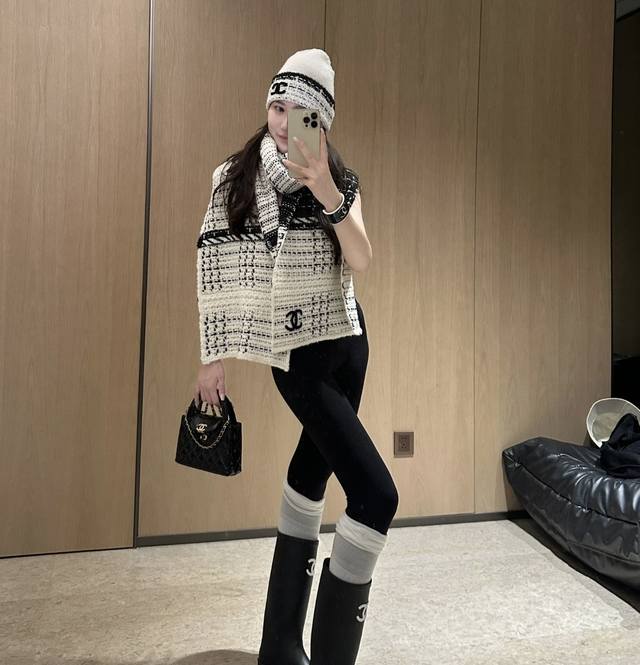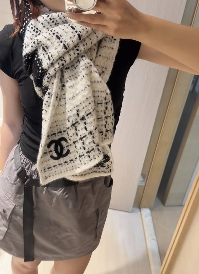High-end Chanel new black and white color-blocked scarf, a delightful moment, exquisite handcrafted craftsmanship. The large C logo is amazing, the actual product is incredibly high-end. Warm for winter! Absolutely stunning! Extremely soft and comfortable, full of texture and elegance! Effortless sophistication, wear it however you like and you'll exude elegance! Size: 30*185mm, top-grade cashmere, high-end handcrafted scarf.