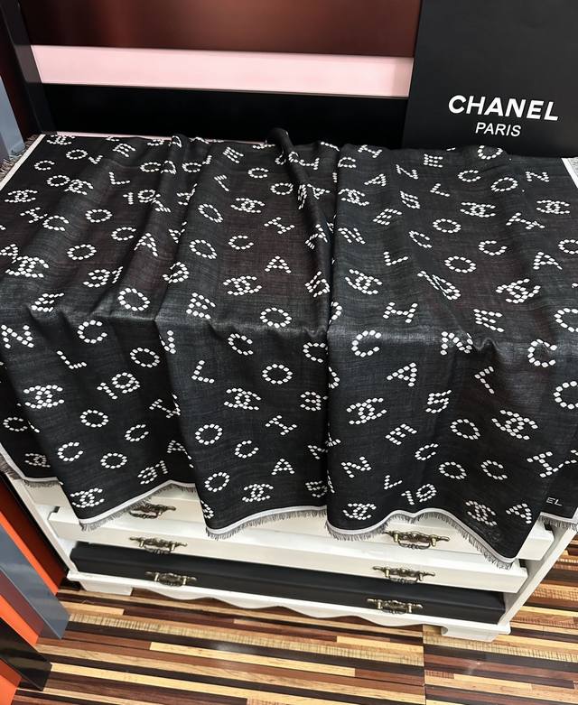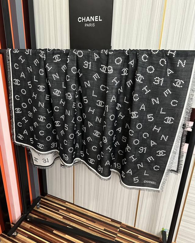 High-quality Chanel pearl logo scarf with classic camellia design. A classic Coco Chanel velvet scarf with an elegant, classic look. The fabric from Chanel's new season is incredibly luxurious, super soft, silky smooth, and very durable