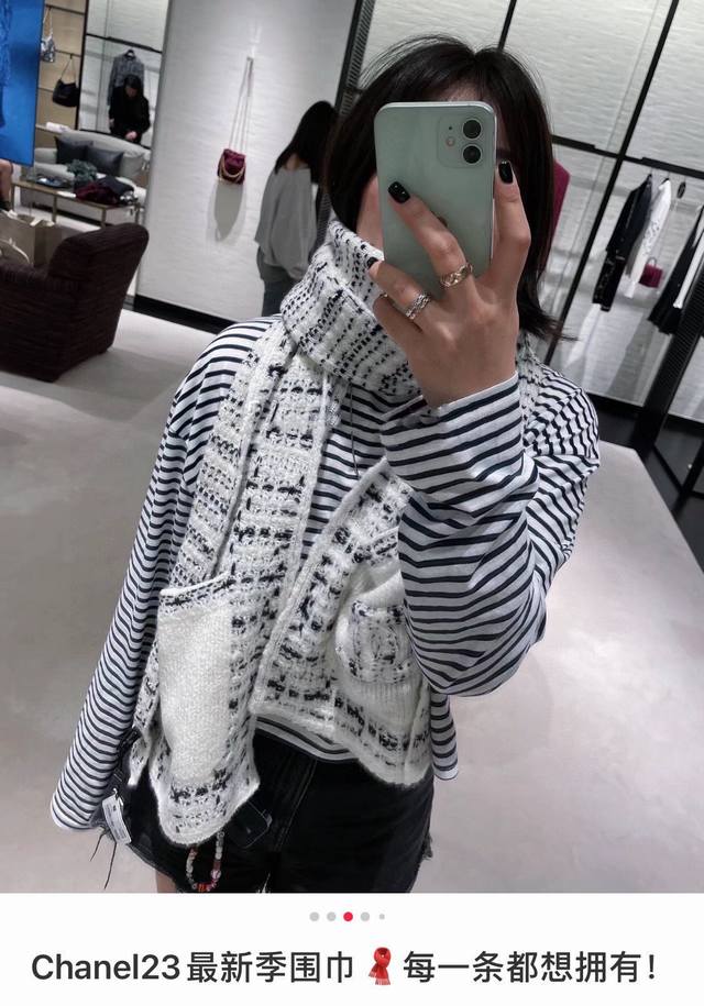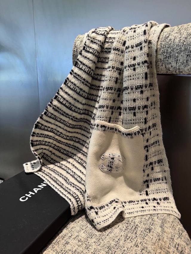 I absolutely love this Chanel knit scarf with pockets! It's sophisticated yet playfully stylish!! Undoubtedly the star of the Fall/Winter collection~ For winter confidence, nothing beats a rare and luxurious scarf!! If you only have one budget for a high-end, unique scarf this year, and only want one, then this is a must-have!! It's truly an effortless chic example, a true epitome of high-end style!! Wearing such a high-end cashmere scarf in winter brings a real sense of happiness and satisfaction!!! The front is made of 100% cashmere, paired with an ingenious embroidery design; this combination is pure sophistication and style, instantly giving it a fun soul!! The 30cm size is very easy to wear!! A super low price, highly recommended !