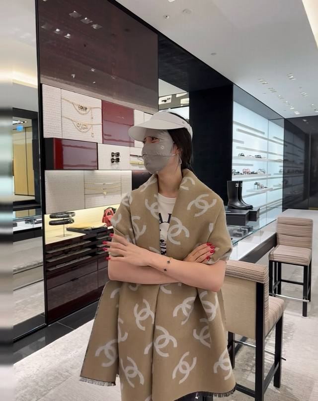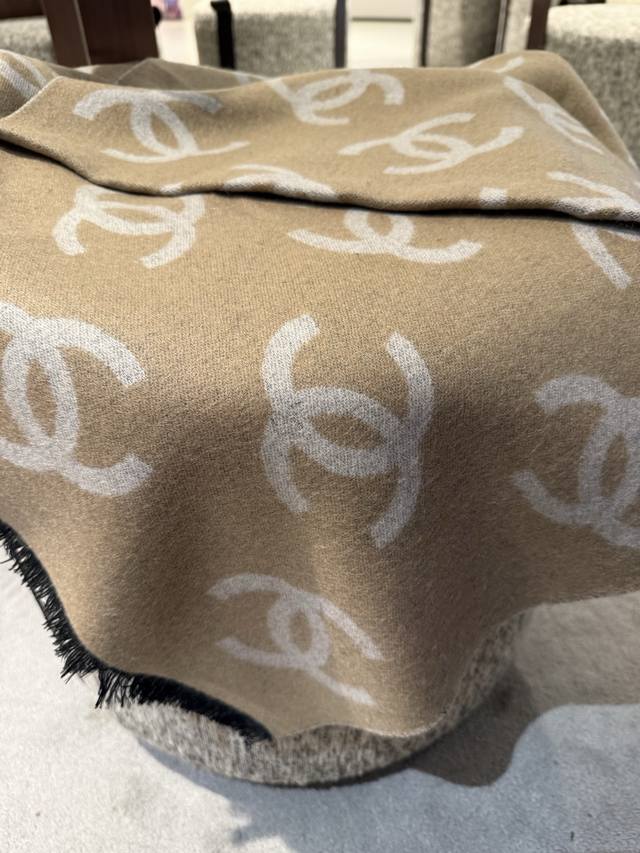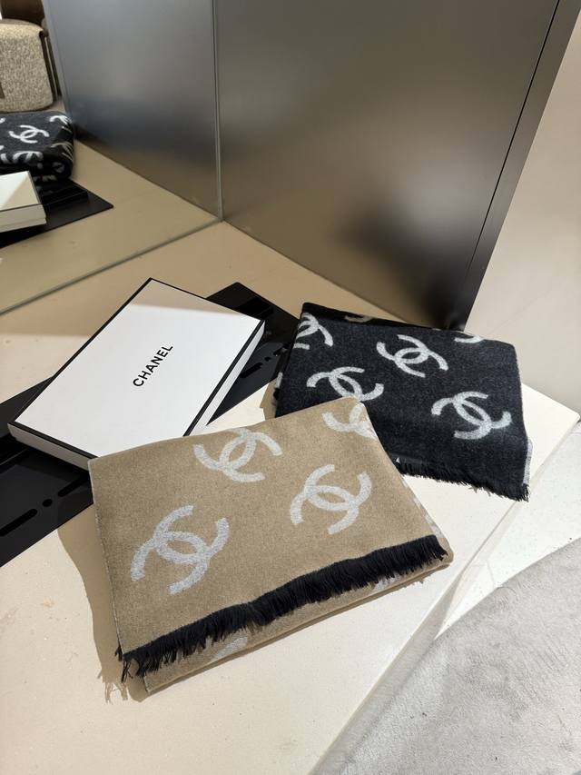 Latest Chanel 25B Black and White Shawl! I absolutely love this all-logo shawl! It's incredibly recognizable and perfect for wearing in an air-conditioned room. It's reversible; one side is all-logo, and the other is light gray with two large logos. Size: C205X70Cm. A very modern large shawl/scarf! Definitely worth getting!