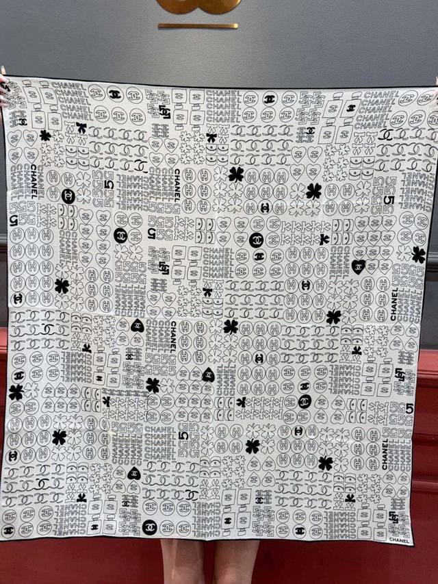 New Arrival! 2025 Chanel Classic Camellia Elegance Coco Style, Chanel's latest quilted velvet square scarf~ Elegance to the core! Chanel's new season fabric is incredibly high-end, truly super soft, silky smooth, and very durable, not easily snagged! This year's new collection~ I'm truly captivated by this design. Chanel scarves are absolutely the epitome of elegance. A Chanel scarf gives you the best styling! A must-have! The effect when worn is simply elegant and sophisticated, very dynamic. Layered and elegant texture. Layers create a striking yet understated glamorous look. The pattern is a dotted quilted design~ the lines enhance the texture. A must-have for Chanel fans! 110*110cm size, the effect when worn is simply stunning, and it goes perfectly with clothes, shoes, and bags! The actual product is even more beautiful! Classic black and white.