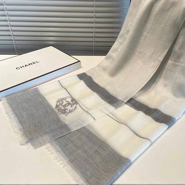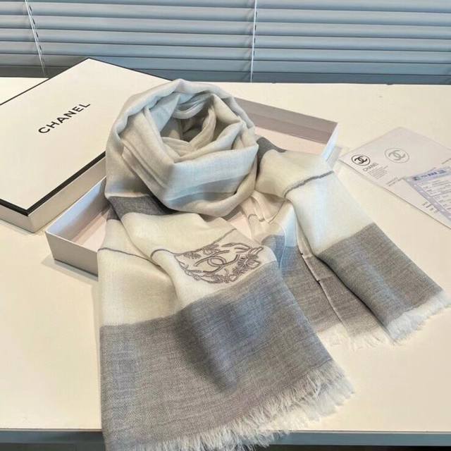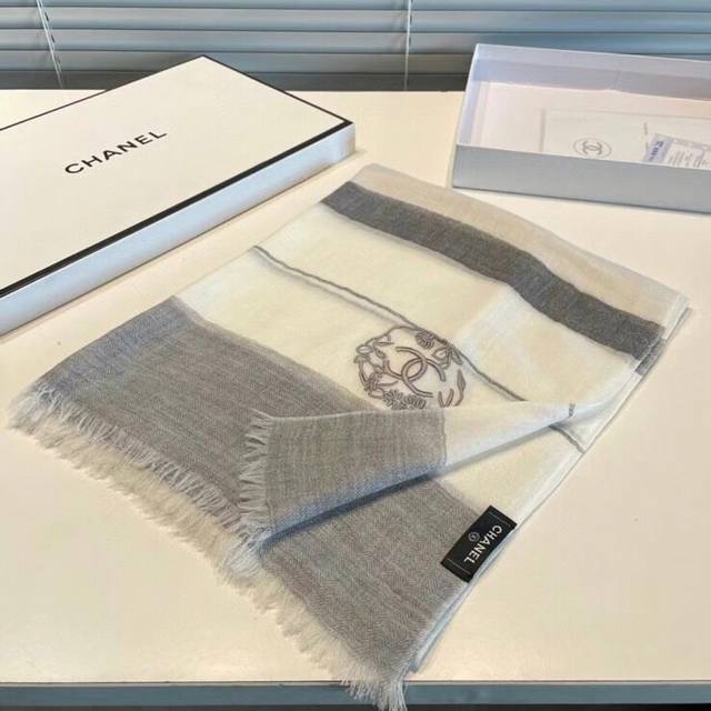 New Arrival: Chanel cashmere scarf! The feel is amazing, top-quality genuine cashmere, exquisite embroidery, and stunning color combinations. Material: Top-grade cashmere. Size: 90x200. This pure cashmere scarf is definitely great value for money!
