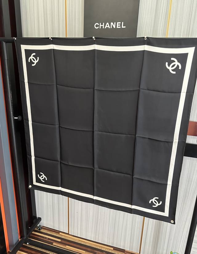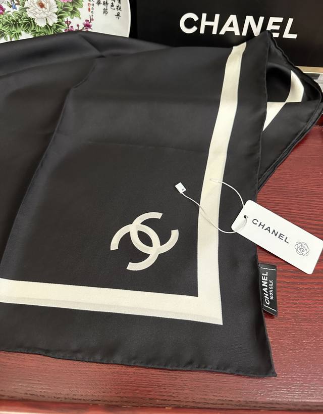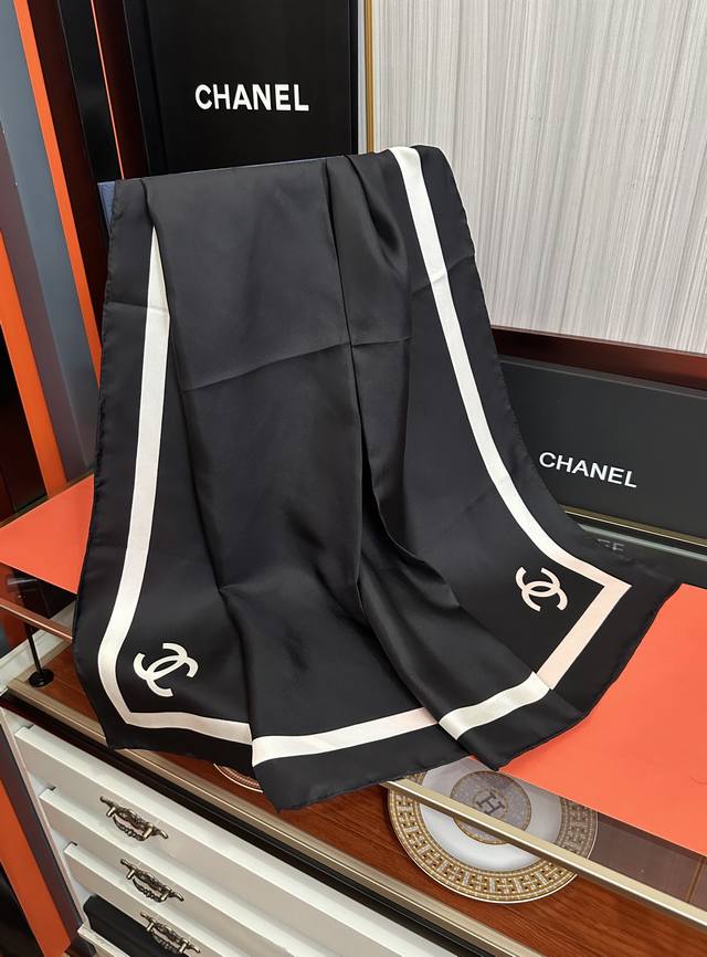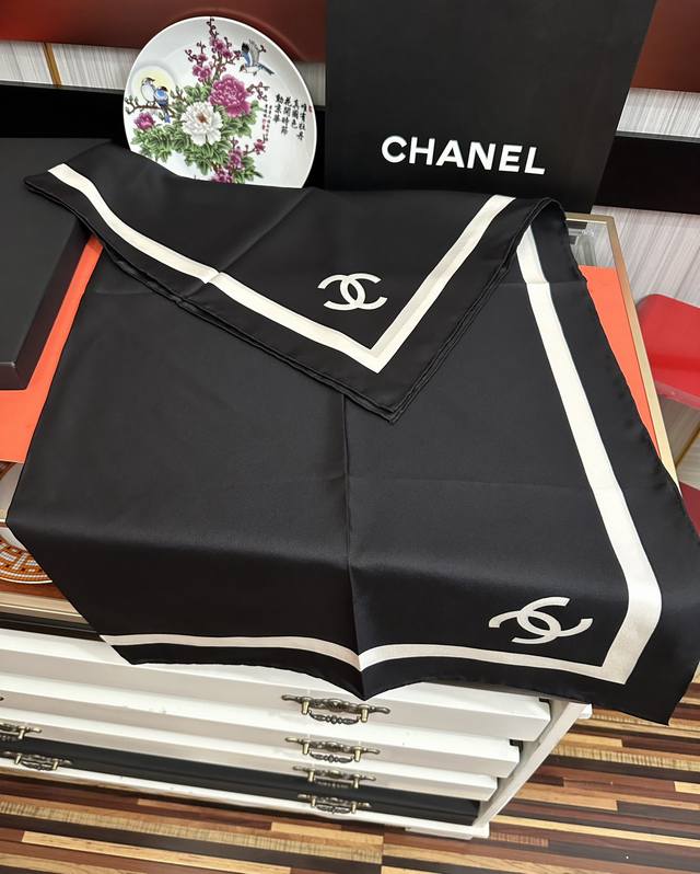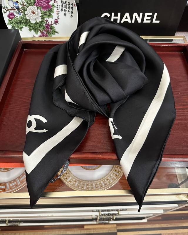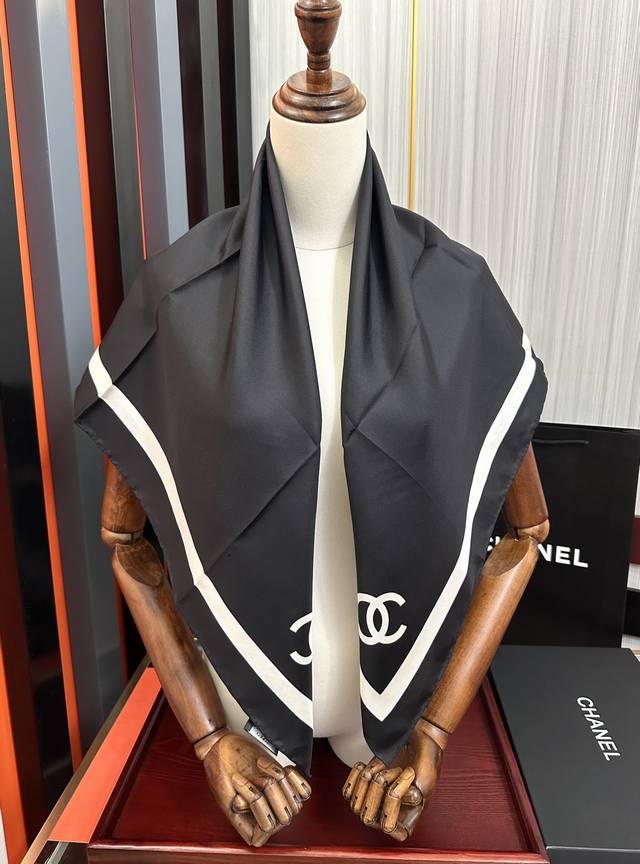 New Arrival! Chanel's latest 2025 Spring/Summer scarf design, synchronized with the official website. The design is truly groundbreaking and suitable for all ages. The black and white is sophisticated and classic. Each one feels like a once-in-a-lifetime opportunity; they're so beautiful! They look great no matter how you wear them, and they can even be considered works of art. This year's hottest style. Size: 90x90 cm. Material: Silk.