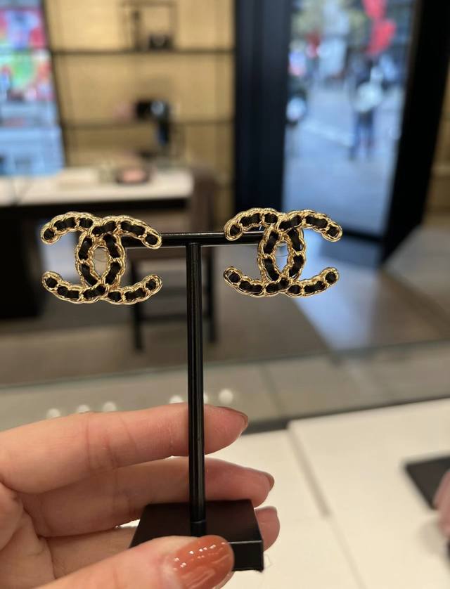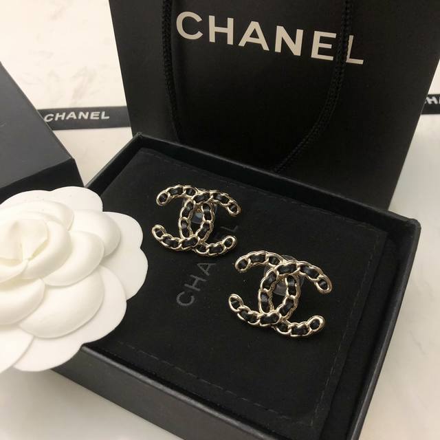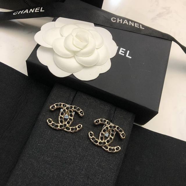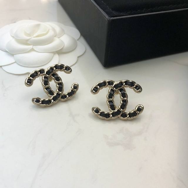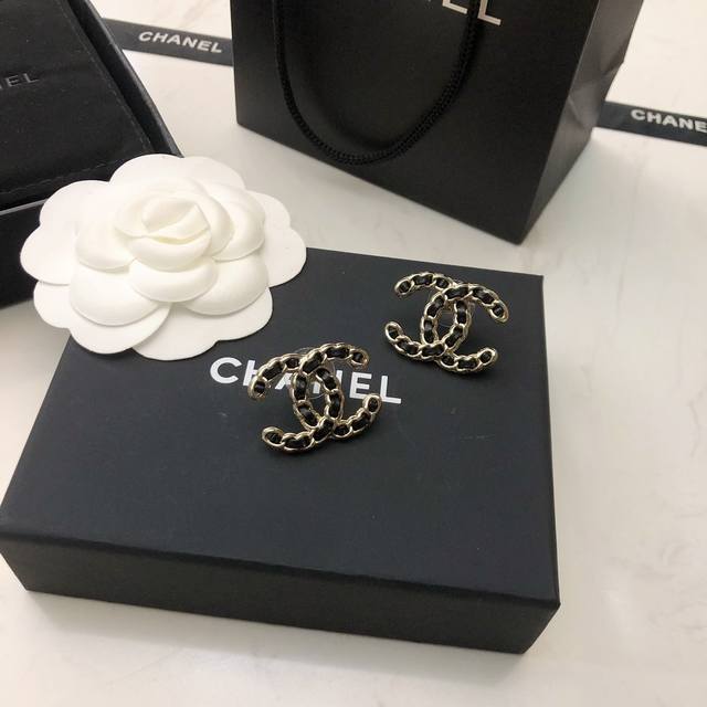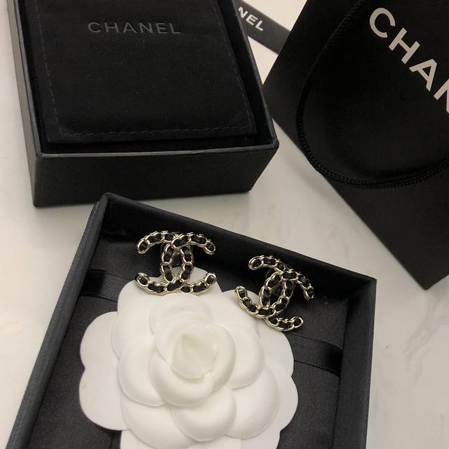 New Chanel Double C Leather Earrings in Black and White, Hot Selling, Purchasing Level, Highest Version on the Market! 1:1 Style Opening, Original, Chanel Earrings, Must-Have for Goddesses, Super Face-Slimming