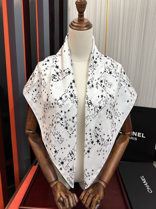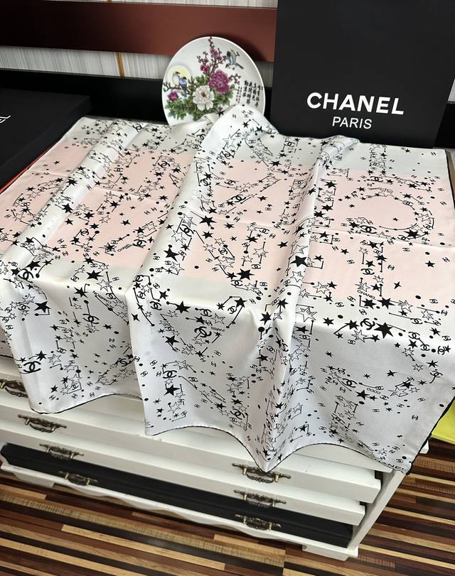New Chanel Graffiti Letter Series. Chanel is always a classic. This one features a cleverly interwoven pattern of the letter logo, it's simply gorgeous! Love is hidden deep within, showcasing a playful design. A highly recommended romantic piece. Size: 90x90 cm. 100% silk twill, 2 colors.