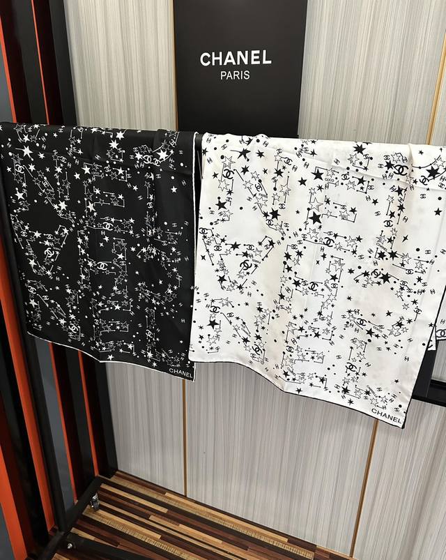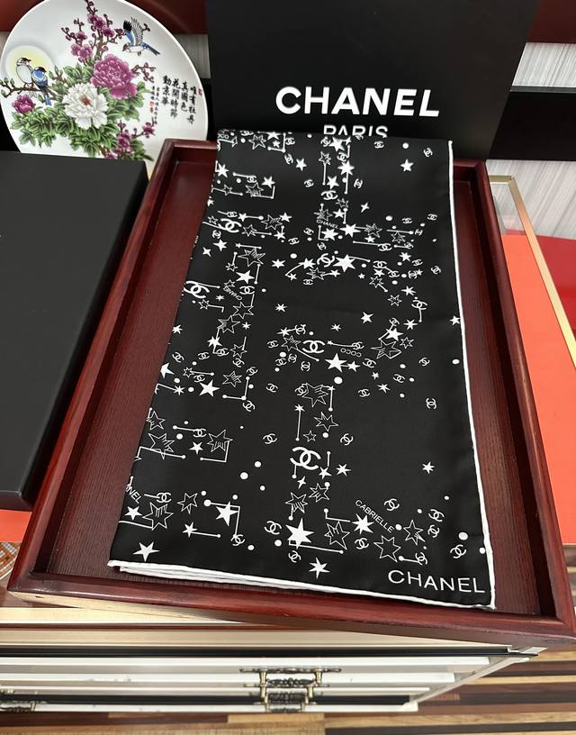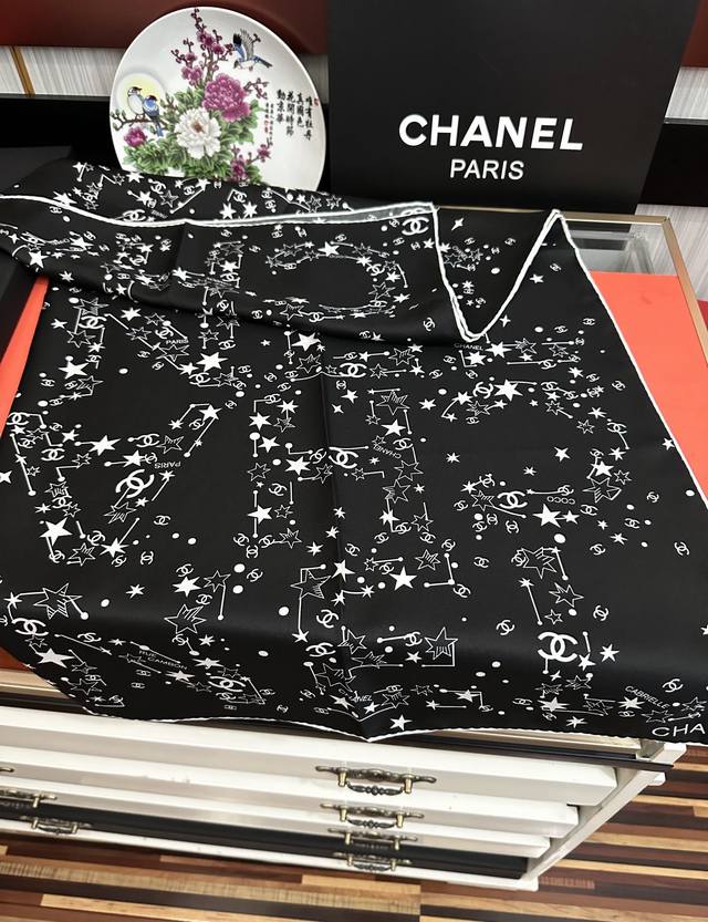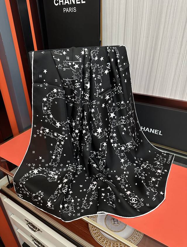 New Chanel Graffiti Letter Series. Chanel is always a classic. This one features a cleverly interwoven pattern of the letter logo, it's simply gorgeous! Love is hidden deep within, showcasing a playful design. A highly recommended romantic piece. Size: 90x90 cm. 100% silk twill, 2 colors.