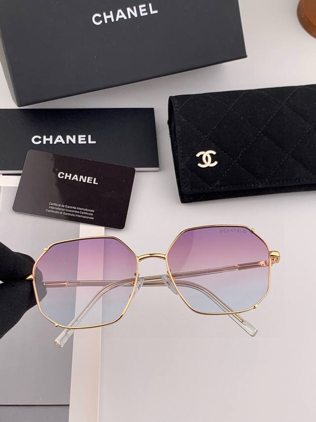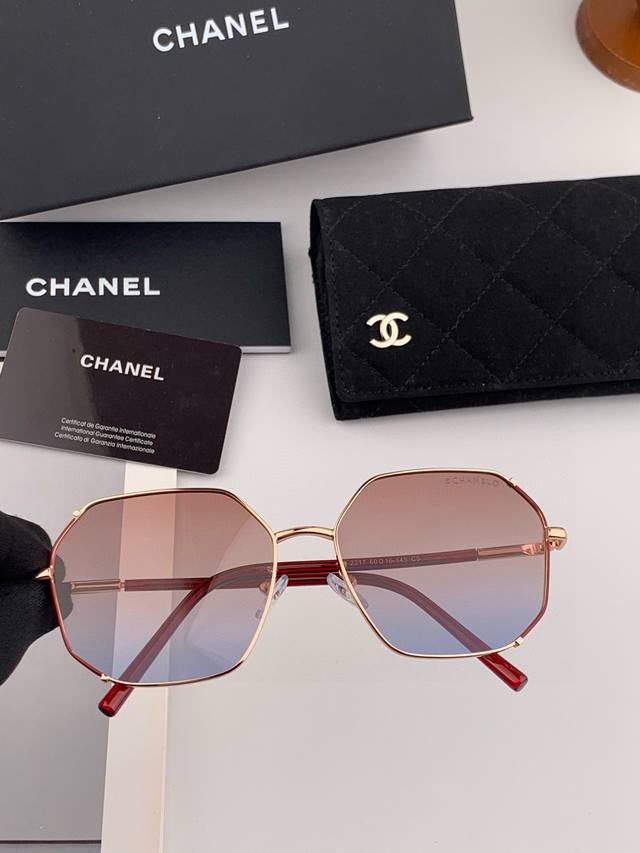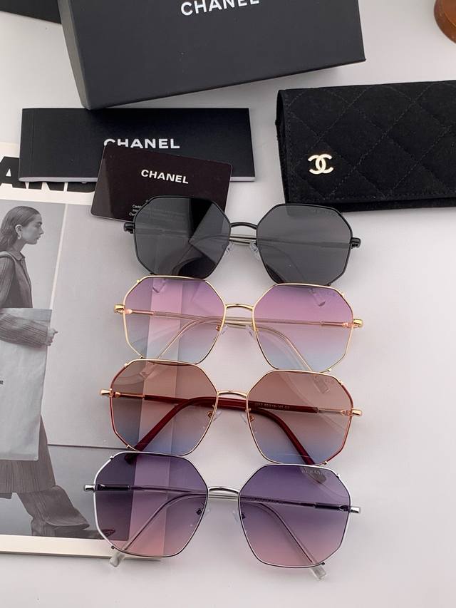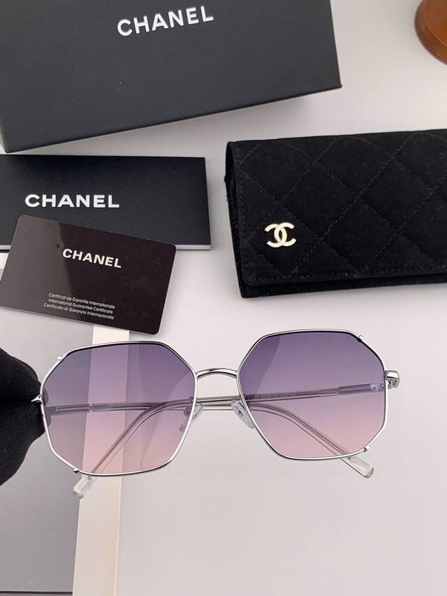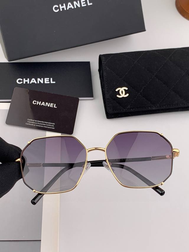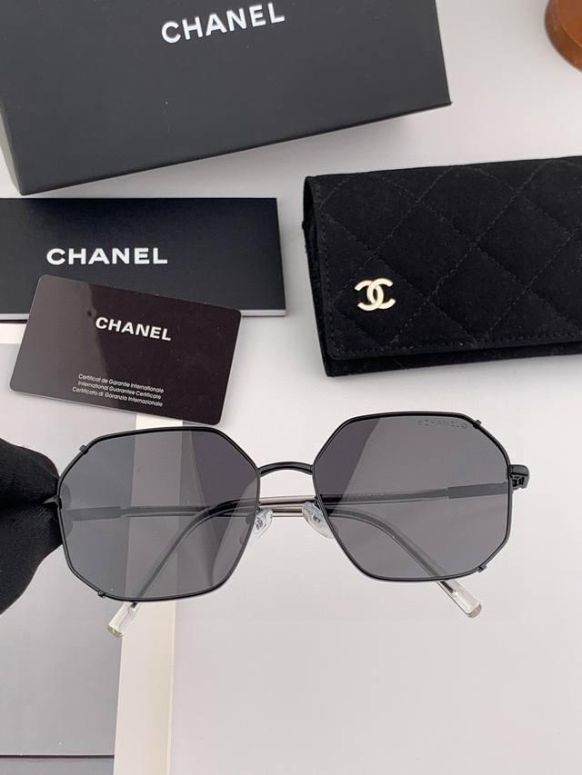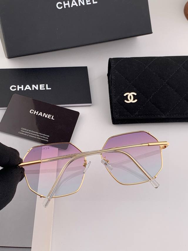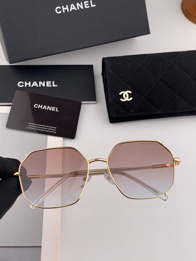 New Chanel sunglasses showcase the latest spring/summer eyewear with unique charm and avant-garde style. The square frame is embellished with classic Chanel pearls on both sides, and the metal center bridge is extremely comfortable to wear. Model: 1722