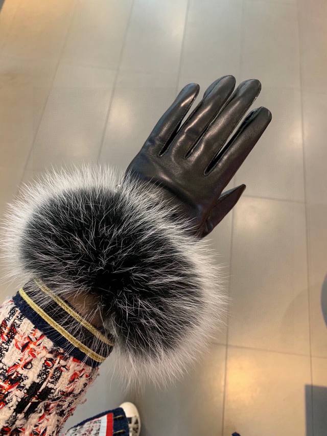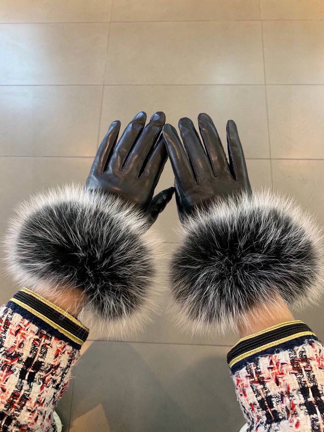 Original Chanel single-piece gloves exported from Italy, made with top-grade white goatskin and fox fur (note: genuine fox fur). Absolutely luxurious, with a soft, delicate, and skin-friendly feel, offering superior warmth. Natural dyes, low-temperature dyeing, resulting in the purest, richest, and most vibrant color. Colorfastness has been tested. Excellent warmth and a soft, velvety touch that you'll absolutely love.