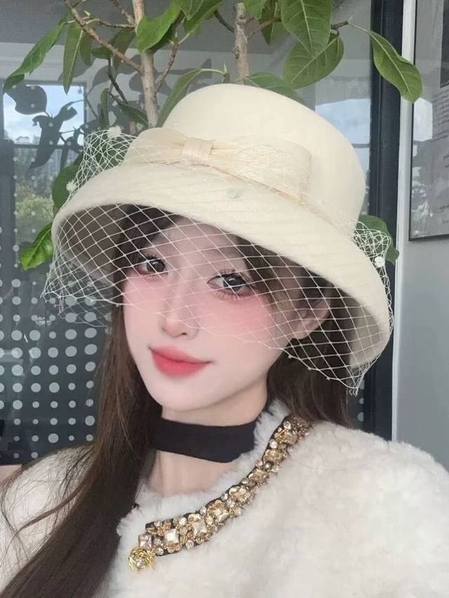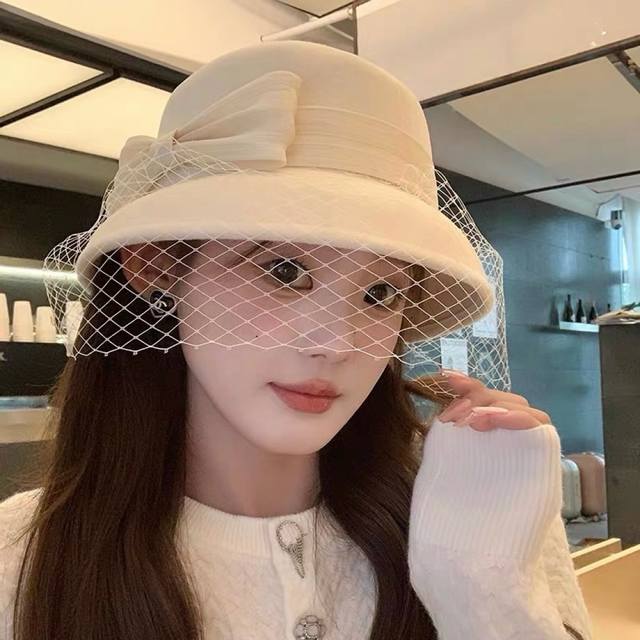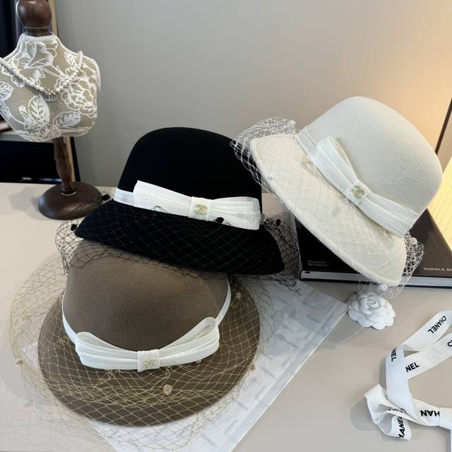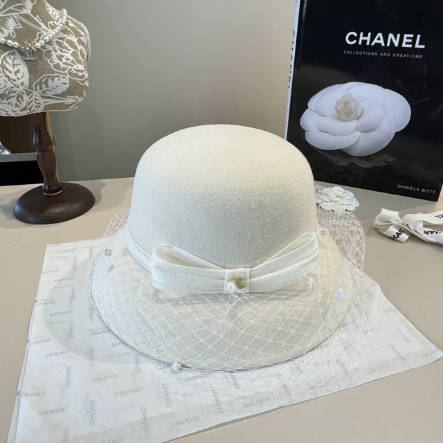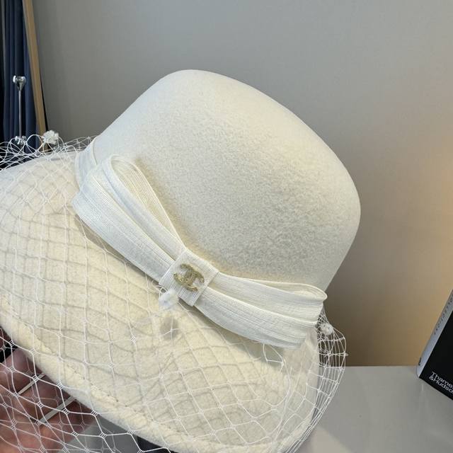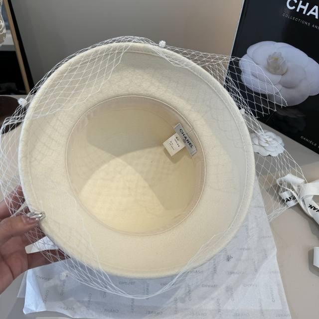 / p White Chanel new autumn/winter wool bucket hat, imported linen yarn, 100% wool